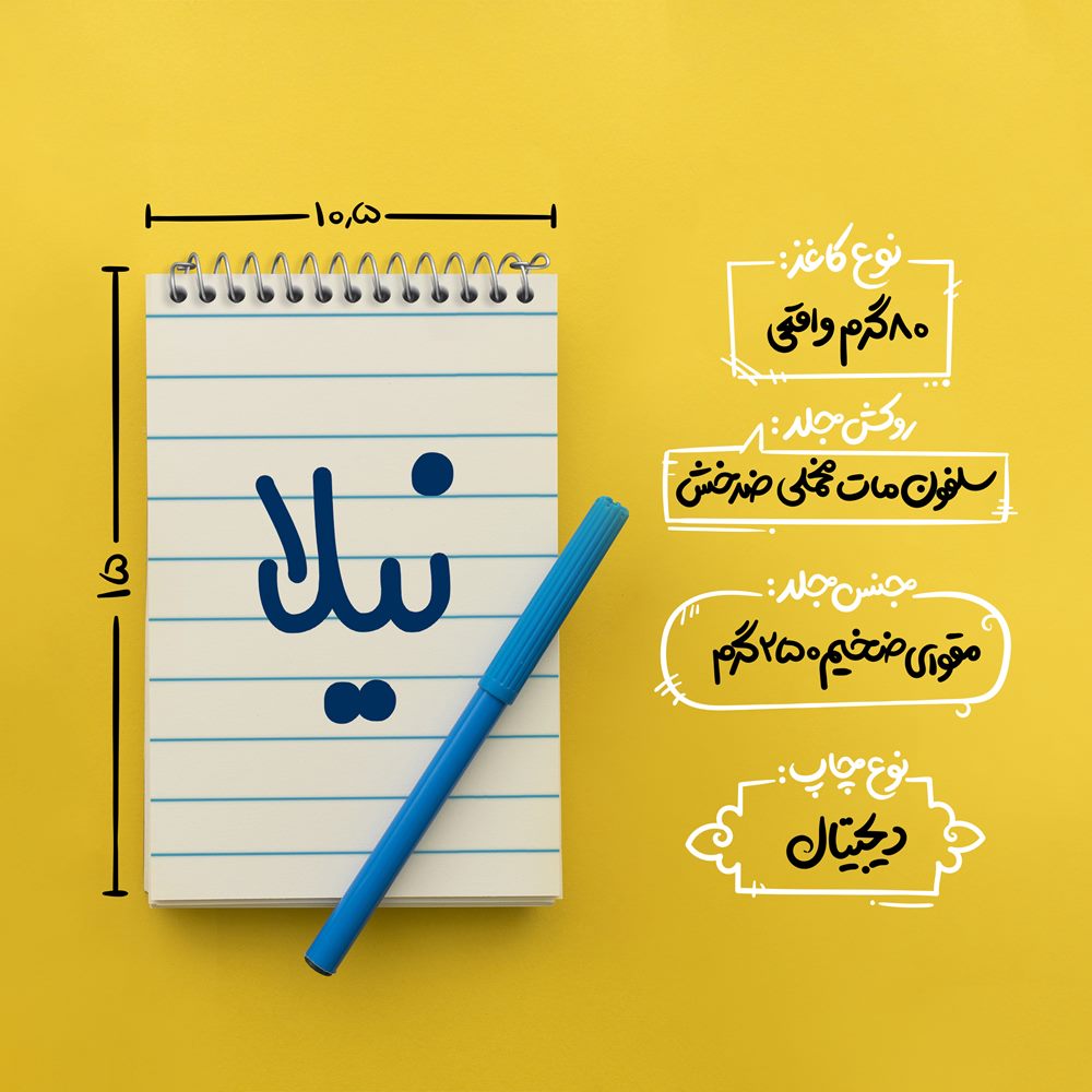 برند خندالو در زمینه تولید انواع دفاتر فانتزی و تحصیلی فعالیت میکند که به دلیل جذابیت ظاهری و طرح های متنوع طرفداران زیادی دارد. دفتر یادداشت خندالو طرح نیلا محصولی مناسب برای همه عاشقان لوازم التحریر است و همچنین همه کسانی که بنا به موقعیت تحصیل یا شغلشان با دفتر و نوشت افزار زیاد سر و کار دارند. در تولید دفتر یادداشت خندالو طرح نیلا از نوع صحافی فنر مارپیچ استفاده شده که در این نوع صحافی برگهها به راحتی چرخیده و یا بیرون آورده می شوند. دفتر های خندالو دارای جلد انعطاف پذیر از جنس مقوای گلاسه 250 گرم با روکش سلفون مات مخملی است که به شما امکان میدهد از دفتر خود بدون اینکه نگرانی از شکستن یا خراب شدن جلد را داشته باشید استفاده کنید و همچنین در این دفاتر از کاغذ 80 گرم با کیفیت استفاده شده که باعث میشود هنگام نوشتن به خوبی جوهر قلم بر روی صفحه نشسته و از خط خوردگیها جلوگیری کند. دفتر یادداشت خندالو با جنس و دوام مناسب، برگه های کاملاً سفید و خطوط طوسی دقیق را داراست که انسان را به نوشتن منظم و زیبا ترغیب میکند. طراحی کاملاً مناسب این دفاتر، به همراه کیفیت بالا، از آن یک محصول مورد علاقه و قابل اعتماد برای همه مقاطع تحصیلی میسازد. دفتر یادداشت خندالو طرح نیلا انتخابی هوشمندانه و مناسب برای افرادی است که به دنبال دفتری با کیفیت و کاربرد عالی هستند. این دفتر، همراه خوبی برای شما در تمام مراحل تحصیل و کار خواهد بود و تجربهای لذتبخش از نوشتن و آموختن را به شما هدیه میدهد.