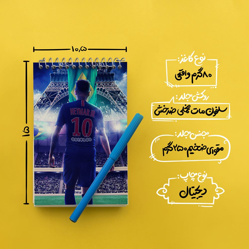 برند خندالو در زمینه تولید انواع دفاتر فانتزی و تحصیلی فعالیت میکند که به دلیل جذابیت ظاهری و طرح های متنوع طرفداران زیادی دارد. دفتر یادداشت خندالو طرح نیمار Neymar محصولی مناسب برای همه عاشقان لوازم التحریر است و همچنین همه کسانی که بنا به موقعیت تحصیل یا شغلشان با دفتر و نوشت افزار زیاد سر و کار دارند. در تولید دفتر یادداشت خندالو طرح نیمار Neymar از نوع صحافی فنر مارپیچ استفاده شده که در این نوع صحافی برگهها به راحتی چرخیده و یا بیرون آورده می شوند. دفتر های خندالو دارای جلد انعطاف پذیر از جنس مقوای گلاسه 250 گرم با روکش سلفون مات مخملی است که به شما امکان میدهد از دفتر خود بدون اینکه نگرانی از شکستن یا خراب شدن جلد را داشته باشید استفاده کنید و همچنین در این دفاتر از کاغذ 80 گرم با کیفیت استفاده شده که باعث میشود هنگام نوشتن به خوبی جوهر قلم بر روی صفحه نشسته و از خط خوردگیها جلوگیری کند. دفتر یادداشت خندالو با جنس و دوام مناسب، برگه های کاملاً سفید و خطوط طوسی دقیق را داراست که انسان را به نوشتن منظم و زیبا ترغیب میکند. طراحی کاملاً مناسب این دفاتر، به همراه کیفیت بالا، از آن یک محصول مورد علاقه و قابل اعتماد برای همه مقاطع تحصیلی میسازد. دفتر یادداشت خندالو طرح نیمار Neymar انتخابی هوشمندانه و مناسب برای افرادی است که به دنبال دفتری با کیفیت و کاربرد عالی هستند. این دفتر، همراه خوبی برای شما در تمام مراحل تحصیل و کار خواهد بود و تجربهای لذتبخش از نوشتن و آموختن را به شما هدیه میدهد.