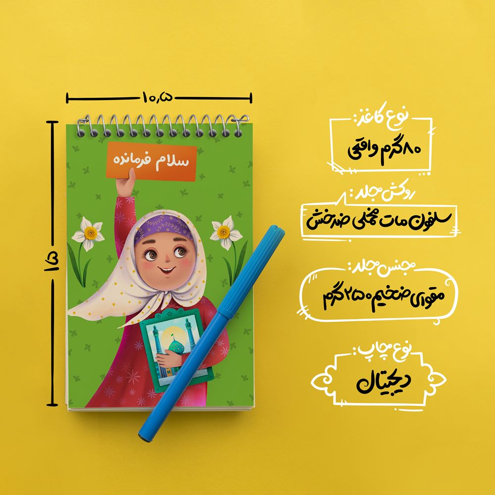 برند خندالو در زمینه تولید انواع دفاتر فانتزی و تحصیلی فعالیت میکند که به دلیل جذابیت ظاهری و طرح های متنوع طرفداران زیادی دارد. دفتر یادداشت خندالو طرح نیمه شعبان کودکانه محصولی مناسب برای همه عاشقان لوازم التحریر است و همچنین همه کسانی که بنا به موقعیت تحصیل یا شغلشان با دفتر و نوشت افزار زیاد سر و کار دارند. در تولید دفتر یادداشت خندالو طرح نیمه شعبان کودکانه از نوع صحافی فنر مارپیچ استفاده شده که در این نوع صحافی برگه‌ها به راحتی چرخیده و یا بیرون آورده می شوند.