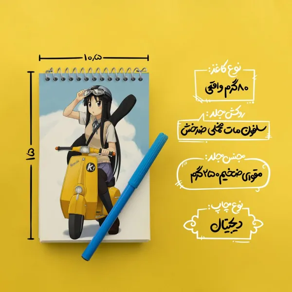 برند خندالو در زمینه تولید انواع دفاتر فانتزی و تحصیلی فعالیت میکند که به دلیل جذابیت ظاهری و طرح های متنوع طرفداران زیادی دارد. دفتر یادداشت خندالو طرح نیناموری انیمه فولی کولی Fooly Cooly محصولی مناسب برای همه عاشقان لوازم التحریر است و همچنین همه کسانی که بنا به موقعیت تحصیل یا شغلشان با دفتر و نوشت افزار زیاد سر و کار دارند. در تولید دفتر یادداشت خندالو طرح نیناموری انیمه فولی کولی Fooly Cooly از نوع صحافی فنر مارپیچ استفاده شده که در این نوع صحافی برگهها به راحتی چرخیده و یا بیرون آورده می شوند. دفتر های خندالو دارای جلد انعطاف پذیر از جنس مقوای گلاسه 250 گرم با روکش سلفون مات مخملی است که به شما امکان میدهد از دفتر خود بدون اینکه نگرانی از شکستن یا خراب شدن جلد را داشته باشید استفاده کنید و همچنین در این دفاتر از کاغذ 80 گرم با کیفیت استفاده شده که باعث میشود هنگام نوشتن به خوبی جوهر قلم بر روی صفحه نشسته و از خط خوردگیها جلوگیری کند. دفتر یادداشت خندالو با جنس و دوام مناسب، برگه های کاملاً سفید و خطوط طوسی دقیق را داراست که انسان را به نوشتن منظم و زیبا ترغیب میکند. طراحی کاملاً مناسب این دفاتر، به همراه کیفیت بالا، از آن یک محصول مورد علاقه و قابل اعتماد برای همه مقاطع تحصیلی میسازد. دفتر یادداشت خندالو طرح نیناموری انیمه فولی کولی Fooly Cooly انتخابی هوشمندانه و مناسب برای افرادی است که به دنبال دفتری با کیفیت و کاربرد عالی هستند. این دفتر، همراه خوبی برای شما در تمام مراحل تحصیل و کار خواهد بود و تجربهای لذتبخش از نوشتن و آموختن را به شما هدیه میدهد.