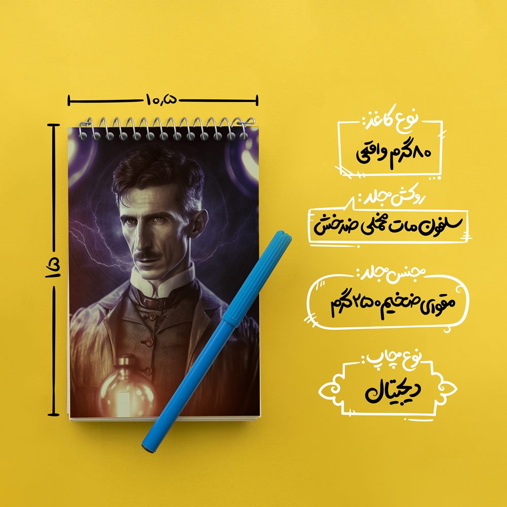 برند خندالو در زمینه تولید انواع دفاتر فانتزی و تحصیلی فعالیت میکند که به دلیل جذابیت ظاهری و طرح های متنوع طرفداران زیادی دارد. دفتر یادداشت خندالو طرح نیکولاس تسلا Tesla محصولی مناسب برای همه عاشقان لوازم التحریر است و همچنین همه کسانی که بنا به موقعیت تحصیل یا شغلشان با دفتر و نوشت افزار زیاد سر و کار دارند. در تولید دفتر یادداشت خندالو طرح نیکولاس تسلا Tesla از نوع صحافی فنر مارپیچ استفاده شده که در این نوع صحافی برگهها به راحتی چرخیده و یا بیرون آورده می شوند. دفتر های خندالو دارای جلد انعطاف پذیر از جنس مقوای گلاسه 250 گرم با روکش سلفون مات مخملی است که به شما امکان میدهد از دفتر خود بدون اینکه نگرانی از شکستن یا خراب شدن جلد را داشته باشید استفاده کنید و همچنین در این دفاتر از کاغذ 80 گرم با کیفیت استفاده شده که باعث میشود هنگام نوشتن به خوبی جوهر قلم بر روی صفحه نشسته و از خط خوردگیها جلوگیری کند. دفتر یادداشت خندالو با جنس و دوام مناسب، برگه های کاملاً سفید و خطوط طوسی دقیق را داراست که انسان را به نوشتن منظم و زیبا ترغیب میکند. طراحی کاملاً مناسب این دفاتر، به همراه کیفیت بالا، از آن یک محصول مورد علاقه و قابل اعتماد برای همه مقاطع تحصیلی میسازد. دفتر یادداشت خندالو طرح نیکولاس تسلا Tesla انتخابی هوشمندانه و مناسب برای افرادی است که به دنبال دفتری با کیفیت و کاربرد عالی هستند. این دفتر، همراه خوبی برای شما در تمام مراحل تحصیل و کار خواهد بود و تجربهای لذتبخش از نوشتن و آموختن را به شما هدیه میدهد.