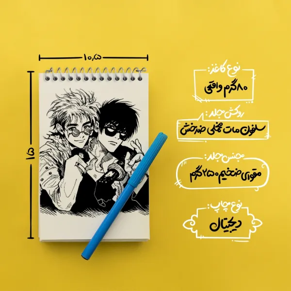 برند خندالو در زمینه تولید انواع دفاتر فانتزی و تحصیلی فعالیت میکند که به دلیل جذابیت ظاهری و طرح های متنوع طرفداران زیادی دارد. دفتر یادداشت خندالو طرح نیکولاس و وش انیمه تریگان (Trigun) محصولی مناسب برای همه عاشقان لوازم التحریر است و همچنین همه کسانی که بنا به موقعیت تحصیل یا شغلشان با دفتر و نوشت افزار زیاد سر و کار دارند. در تولید دفتر یادداشت خندالو طرح نیکولاس و وش انیمه تریگان (Trigun) از نوع صحافی فنر مارپیچ استفاده شده که در این نوع صحافی برگهها به راحتی چرخیده و یا بیرون آورده می شوند. دفتر های خندالو دارای جلد انعطاف پذیر از جنس مقوای گلاسه 250 گرم با روکش سلفون مات مخملی است که به شما امکان میدهد از دفتر خود بدون اینکه نگرانی از شکستن یا خراب شدن جلد را داشته باشید استفاده کنید و همچنین در این دفاتر از کاغذ 80 گرم با کیفیت استفاده شده که باعث میشود هنگام نوشتن به خوبی جوهر قلم بر روی صفحه نشسته و از خط خوردگیها جلوگیری کند. دفتر یادداشت خندالو با جنس و دوام مناسب، برگه های کاملاً سفید و خطوط طوسی دقیق را داراست که انسان را به نوشتن منظم و زیبا ترغیب میکند. طراحی کاملاً مناسب این دفاتر، به همراه کیفیت بالا، از آن یک محصول مورد علاقه و قابل اعتماد برای همه مقاطع تحصیلی میسازد. دفتر یادداشت خندالو طرح نیکولاس و وش انیمه تریگان (Trigun) انتخابی هوشمندانه و مناسب برای افرادی است که به دنبال دفتری با کیفیت و کاربرد عالی هستند. این دفتر، همراه خوبی برای شما در تمام مراحل تحصیل و کار خواهد بود و تجربهای لذتبخش از نوشتن و آموختن را به شما هدیه میدهد.