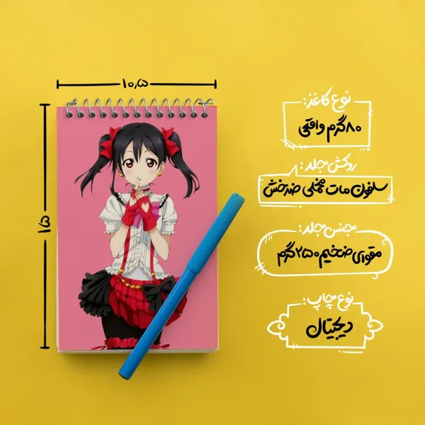 برند خندالو در زمینه تولید انواع دفاتر فانتزی و تحصیلی فعالیت میکند که به دلیل جذابیت ظاهری و طرح های متنوع طرفداران زیادی دارد. دفتر یادداشت خندالو طرح نیکو یازاوا انیمه لاو لایو Love Live محصولی مناسب برای همه عاشقان لوازم التحریر است و همچنین همه کسانی که بنا به موقعیت تحصیل یا شغلشان با دفتر و نوشت افزار زیاد سر و کار دارند. در تولید دفتر یادداشت خندالو طرح نیکو یازاوا انیمه لاو لایو Love Live از نوع صحافی فنر مارپیچ استفاده شده که در این نوع صحافی برگهها به راحتی چرخیده و یا بیرون آورده می شوند. دفتر های خندالو دارای جلد انعطاف پذیر از جنس مقوای گلاسه 250 گرم با روکش سلفون مات مخملی است که به شما امکان میدهد از دفتر خود بدون اینکه نگرانی از شکستن یا خراب شدن جلد را داشته باشید استفاده کنید و همچنین در این دفاتر از کاغذ 80 گرم با کیفیت استفاده شده که باعث میشود هنگام نوشتن به خوبی جوهر قلم بر روی صفحه نشسته و از خط خوردگیها جلوگیری کند. دفتر یادداشت خندالو با جنس و دوام مناسب، برگه های کاملاً سفید و خطوط طوسی دقیق را داراست که انسان را به نوشتن منظم و زیبا ترغیب میکند. طراحی کاملاً مناسب این دفاتر، به همراه کیفیت بالا، از آن یک محصول مورد علاقه و قابل اعتماد برای همه مقاطع تحصیلی میسازد. دفتر یادداشت خندالو طرح نیکو یازاوا انیمه لاو لایو Love Live انتخابی هوشمندانه و مناسب برای افرادی است که به دنبال دفتری با کیفیت و کاربرد عالی هستند. این دفتر، همراه خوبی برای شما در تمام مراحل تحصیل و کار خواهد بود و تجربهای لذتبخش از نوشتن و آموختن را به شما هدیه میدهد.