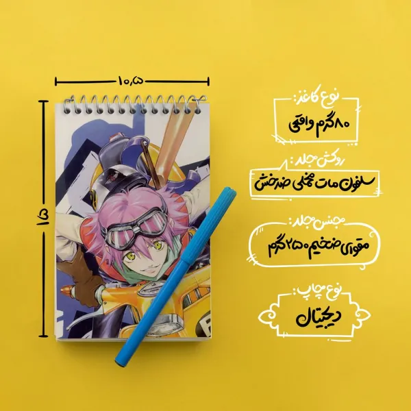 برند خندالو در زمینه تولید انواع دفاتر فانتزی و تحصیلی فعالیت میکند که به دلیل جذابیت ظاهری و طرح های متنوع طرفداران زیادی دارد. دفتر یادداشت خندالو طرح هاروکو انیمه فولی کولی Fooly Cooly محصولی مناسب برای همه عاشقان لوازم التحریر است و همچنین همه کسانی که بنا به موقعیت تحصیل یا شغلشان با دفتر و نوشت افزار زیاد سر و کار دارند. در تولید دفتر یادداشت خندالو طرح هاروکو انیمه فولی کولی Fooly Cooly از نوع صحافی فنر مارپیچ استفاده شده که در این نوع صحافی برگهها به راحتی چرخیده و یا بیرون آورده می شوند. دفتر های خندالو دارای جلد انعطاف پذیر از جنس مقوای گلاسه 250 گرم با روکش سلفون مات مخملی است که به شما امکان میدهد از دفتر خود بدون اینکه نگرانی از شکستن یا خراب شدن جلد را داشته باشید استفاده کنید و همچنین در این دفاتر از کاغذ 80 گرم با کیفیت استفاده شده که باعث میشود هنگام نوشتن به خوبی جوهر قلم بر روی صفحه نشسته و از خط خوردگیها جلوگیری کند. دفتر یادداشت خندالو با جنس و دوام مناسب، برگه های کاملاً سفید و خطوط طوسی دقیق را داراست که انسان را به نوشتن منظم و زیبا ترغیب میکند. طراحی کاملاً مناسب این دفاتر، به همراه کیفیت بالا، از آن یک محصول مورد علاقه و قابل اعتماد برای همه مقاطع تحصیلی میسازد. دفتر یادداشت خندالو طرح هاروکو انیمه فولی کولی Fooly Cooly انتخابی هوشمندانه و مناسب برای افرادی است که به دنبال دفتری با کیفیت و کاربرد عالی هستند. این دفتر، همراه خوبی برای شما در تمام مراحل تحصیل و کار خواهد بود و تجربهای لذتبخش از نوشتن و آموختن را به شما هدیه میدهد.