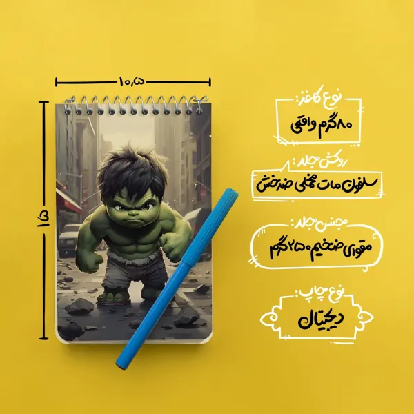 برند خندالو در زمینه تولید انواع دفاتر فانتزی و تحصیلی فعالیت میکند که به دلیل جذابیت ظاهری و طرح های متنوع طرفداران زیادی دارد. دفتر یادداشت خندالو طرح هالک مارول (Marvel) محصولی مناسب برای همه عاشقان لوازم التحریر است و همچنین همه کسانی که بنا به موقعیت تحصیل یا شغلشان با دفتر و نوشت افزار زیاد سر و کار دارند. در تولید دفتر یادداشت خندالو طرح هالک مارول (Marvel) از نوع صحافی فنر مارپیچ استفاده شده که در این نوع صحافی برگه‌ها به راحتی چرخیده و یا بیرون آورده می شوند.