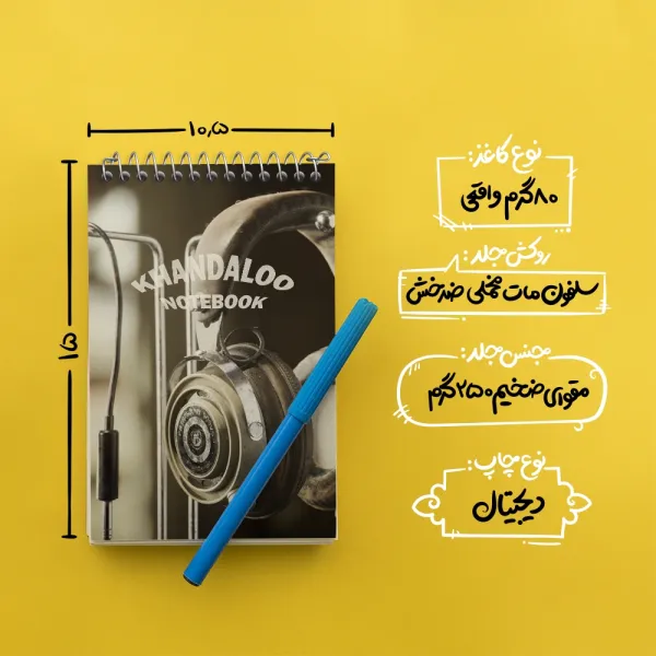 برند خندالو در زمینه تولید انواع دفاتر فانتزی و تحصیلی فعالیت میکند که به دلیل جذابیت ظاهری و طرح های متنوع طرفداران زیادی دارد. دفتر یادداشت خندالو طرح هدفون قدیمی محصولی مناسب برای همه عاشقان لوازم التحریر است و همچنین همه کسانی که بنا به موقعیت تحصیل یا شغلشان با دفتر و نوشت افزار زیاد سر و کار دارند. در تولید دفتر یادداشت خندالو طرح هدفون قدیمی از نوع صحافی فنر مارپیچ استفاده شده که در این نوع صحافی برگهها به راحتی چرخیده و یا بیرون آورده می شوند. دفتر های خندالو دارای جلد انعطاف پذیر از جنس مقوای گلاسه 250 گرم با روکش سلفون مات مخملی است که به شما امکان میدهد از دفتر خود بدون اینکه نگرانی از شکستن یا خراب شدن جلد را داشته باشید استفاده کنید و همچنین در این دفاتر از کاغذ 80 گرم با کیفیت استفاده شده که باعث میشود هنگام نوشتن به خوبی جوهر قلم بر روی صفحه نشسته و از خط خوردگیها جلوگیری کند. دفتر یادداشت خندالو با جنس و دوام مناسب، برگه های کاملاً سفید و خطوط طوسی دقیق را داراست که انسان را به نوشتن منظم و زیبا ترغیب میکند. طراحی کاملاً مناسب این دفاتر، به همراه کیفیت بالا، از آن یک محصول مورد علاقه و قابل اعتماد برای همه مقاطع تحصیلی میسازد. دفتر یادداشت خندالو طرح هدفون قدیمی انتخابی هوشمندانه و مناسب برای افرادی است که به دنبال دفتری با کیفیت و کاربرد عالی هستند. این دفتر، همراه خوبی برای شما در تمام مراحل تحصیل و کار خواهد بود و تجربهای لذتبخش از نوشتن و آموختن را به شما هدیه میدهد.