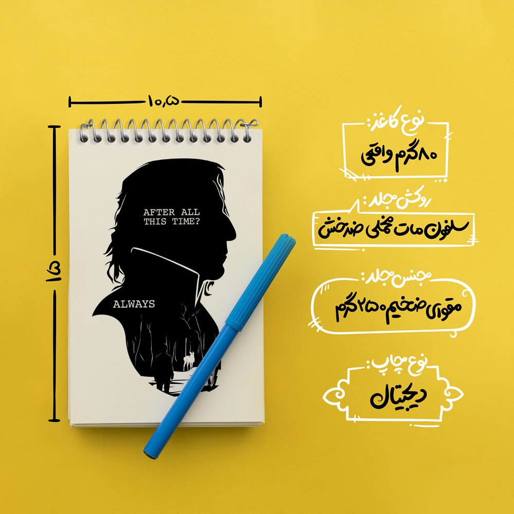 برند خندالو در زمینه تولید انواع دفاتر فانتزی و تحصیلی فعالیت میکند که به دلیل جذابیت ظاهری و طرح های متنوع طرفداران زیادی دارد. دفتر یادداشت خندالو طرح هری پاتر اسنیپ محصولی مناسب برای همه عاشقان لوازم التحریر است و همچنین همه کسانی که بنا به موقعیت تحصیل یا شغلشان با دفتر و نوشت افزار زیاد سر و کار دارند. در تولید دفتر یادداشت خندالو طرح هری پاتر اسنیپ از نوع صحافی فنر مارپیچ استفاده شده که در این نوع صحافی برگهها به راحتی چرخیده و یا بیرون آورده می شوند. دفتر های خندالو دارای جلد انعطاف پذیر از جنس مقوای گلاسه 250 گرم با روکش سلفون مات مخملی است که به شما امکان میدهد از دفتر خود بدون اینکه نگرانی از شکستن یا خراب شدن جلد را داشته باشید استفاده کنید و همچنین در این دفاتر از کاغذ 80 گرم با کیفیت استفاده شده که باعث میشود هنگام نوشتن به خوبی جوهر قلم بر روی صفحه نشسته و از خط خوردگیها جلوگیری کند. دفتر یادداشت خندالو با جنس و دوام مناسب، برگه های کاملاً سفید و خطوط طوسی دقیق را داراست که انسان را به نوشتن منظم و زیبا ترغیب میکند. طراحی کاملاً مناسب این دفاتر، به همراه کیفیت بالا، از آن یک محصول مورد علاقه و قابل اعتماد برای همه مقاطع تحصیلی میسازد. دفتر یادداشت خندالو طرح هری پاتر اسنیپ انتخابی هوشمندانه و مناسب برای افرادی است که به دنبال دفتری با کیفیت و کاربرد عالی هستند. این دفتر، همراه خوبی برای شما در تمام مراحل تحصیل و کار خواهد بود و تجربهای لذتبخش از نوشتن و آموختن را به شما هدیه میدهد.