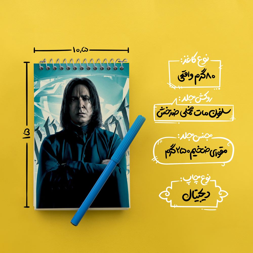 برند خندالو در زمینه تولید انواع دفاتر فانتزی و تحصیلی فعالیت میکند که به دلیل جذابیت ظاهری و طرح های متنوع طرفداران زیادی دارد. دفتر یادداشت خندالو طرح هری پاتر اسنیپ محصولی مناسب برای همه عاشقان لوازم التحریر است و همچنین همه کسانی که بنا به موقعیت تحصیل یا شغلشان با دفتر و نوشت افزار زیاد سر و کار دارند. در تولید دفتر یادداشت خندالو طرح هری پاتر اسنیپ از نوع صحافی فنر مارپیچ استفاده شده که در این نوع صحافی برگهها به راحتی چرخیده و یا بیرون آورده می شوند. دفتر های خندالو دارای جلد انعطاف پذیر از جنس مقوای گلاسه 250 گرم با روکش سلفون مات مخملی است که به شما امکان میدهد از دفتر خود بدون اینکه نگرانی از شکستن یا خراب شدن جلد را داشته باشید استفاده کنید و همچنین در این دفاتر از کاغذ 80 گرم با کیفیت استفاده شده که باعث میشود هنگام نوشتن به خوبی جوهر قلم بر روی صفحه نشسته و از خط خوردگیها جلوگیری کند. دفتر یادداشت خندالو با جنس و دوام مناسب، برگه های کاملاً سفید و خطوط طوسی دقیق را داراست که انسان را به نوشتن منظم و زیبا ترغیب میکند. طراحی کاملاً مناسب این دفاتر، به همراه کیفیت بالا، از آن یک محصول مورد علاقه و قابل اعتماد برای همه مقاطع تحصیلی میسازد. دفتر یادداشت خندالو طرح هری پاتر اسنیپ انتخابی هوشمندانه و مناسب برای افرادی است که به دنبال دفتری با کیفیت و کاربرد عالی هستند. این دفتر، همراه خوبی برای شما در تمام مراحل تحصیل و کار خواهد بود و تجربهای لذتبخش از نوشتن و آموختن را به شما هدیه میدهد.