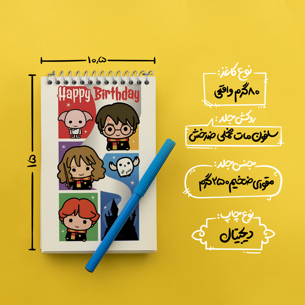 برند خندالو در زمینه تولید انواع دفاتر فانتزی و تحصیلی فعالیت میکند که به دلیل جذابیت ظاهری و طرح های متنوع طرفداران زیادی دارد. دفتر یادداشت خندالو طرح هری پاتر (Harry Potter) محصولی مناسب برای همه عاشقان لوازم التحریر است و همچنین همه کسانی که بنا به موقعیت تحصیل یا شغلشان با دفتر و نوشت افزار زیاد سر و کار دارند. در تولید دفتر یادداشت خندالو طرح هری پاتر (Harry Potter) از نوع صحافی فنر مارپیچ استفاده شده که در این نوع صحافی برگه‌ها به راحتی چرخیده و یا بیرون آورده می شوند.