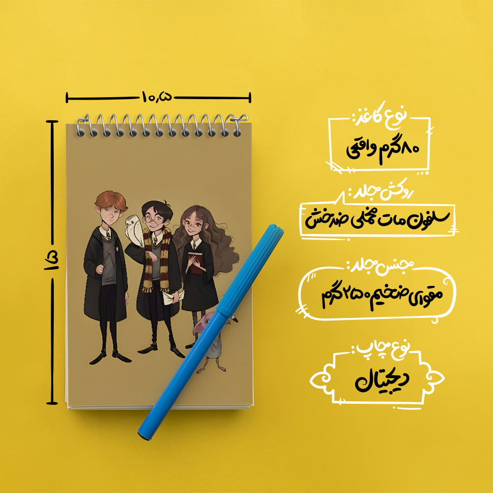 برند خندالو در زمینه تولید انواع دفاتر فانتزی و تحصیلی فعالیت میکند که به دلیل جذابیت ظاهری و طرح های متنوع طرفداران زیادی دارد. دفتر یادداشت خندالو طرح هری پاتر (Harry Potter) محصولی مناسب برای همه عاشقان لوازم التحریر است و همچنین همه کسانی که بنا به موقعیت تحصیل یا شغلشان با دفتر و نوشت افزار زیاد سر و کار دارند. در تولید دفتر یادداشت خندالو طرح هری پاتر (Harry Potter) از نوع صحافی فنر مارپیچ استفاده شده که در این نوع صحافی برگه‌ها به راحتی چرخیده و یا بیرون آورده می شوند.