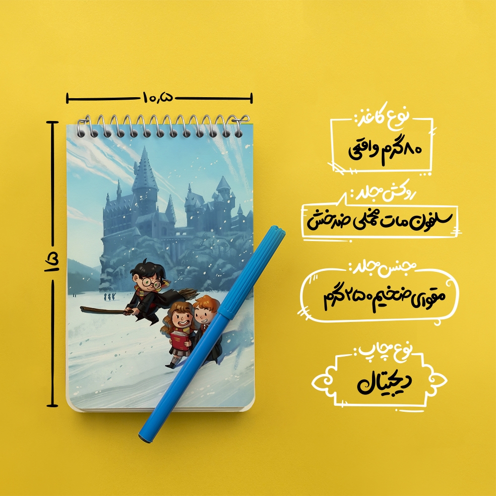 برند خندالو در زمینه تولید انواع دفاتر فانتزی و تحصیلی فعالیت میکند که به دلیل جذابیت ظاهری و طرح های متنوع طرفداران زیادی دارد. دفتر یادداشت خندالو طرح هری پاتر (Harry Potter) محصولی مناسب برای همه عاشقان لوازم التحریر است و همچنین همه کسانی که بنا به موقعیت تحصیل یا شغلشان با دفتر و نوشت افزار زیاد سر و کار دارند. در تولید دفتر یادداشت خندالو طرح هری پاتر (Harry Potter) از نوع صحافی فنر مارپیچ استفاده شده که در این نوع صحافی برگه‌ها به راحتی چرخیده و یا بیرون آورده می شوند.