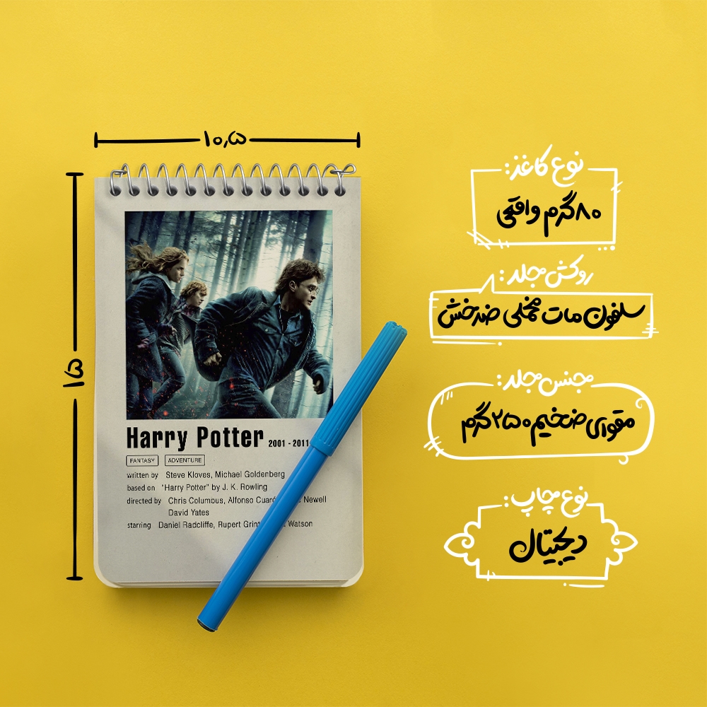 برند خندالو در زمینه تولید انواع دفاتر فانتزی و تحصیلی فعالیت میکند که به دلیل جذابیت ظاهری و طرح های متنوع طرفداران زیادی دارد. دفتر یادداشت خندالو طرح هری پاتر (Harry Potter) محصولی مناسب برای همه عاشقان لوازم التحریر است و همچنین همه کسانی که بنا به موقعیت تحصیل یا شغلشان با دفتر و نوشت افزار زیاد سر و کار دارند. در تولید دفتر یادداشت خندالو طرح هری پاتر (Harry Potter) از نوع صحافی فنر مارپیچ استفاده شده که در این نوع صحافی برگه‌ها به راحتی چرخیده و یا بیرون آورده می شوند.