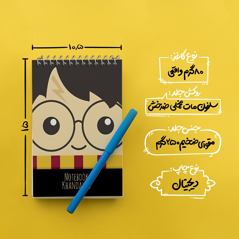 برند خندالو در زمینه تولید انواع دفاتر فانتزی و تحصیلی فعالیت میکند که به دلیل جذابیت ظاهری و طرح های متنوع طرفداران زیادی دارد. دفتر یادداشت خندالو طرح هری پاتر (Harry Potter) محصولی مناسب برای همه عاشقان لوازم التحریر است و همچنین همه کسانی که بنا به موقعیت تحصیل یا شغلشان با دفتر و نوشت افزار زیاد سر و کار دارند. در تولید دفتر یادداشت خندالو طرح هری پاتر (Harry Potter) از نوع صحافی فنر مارپیچ استفاده شده که در این نوع صحافی برگه‌ها به راحتی چرخیده و یا بیرون آورده می شوند.