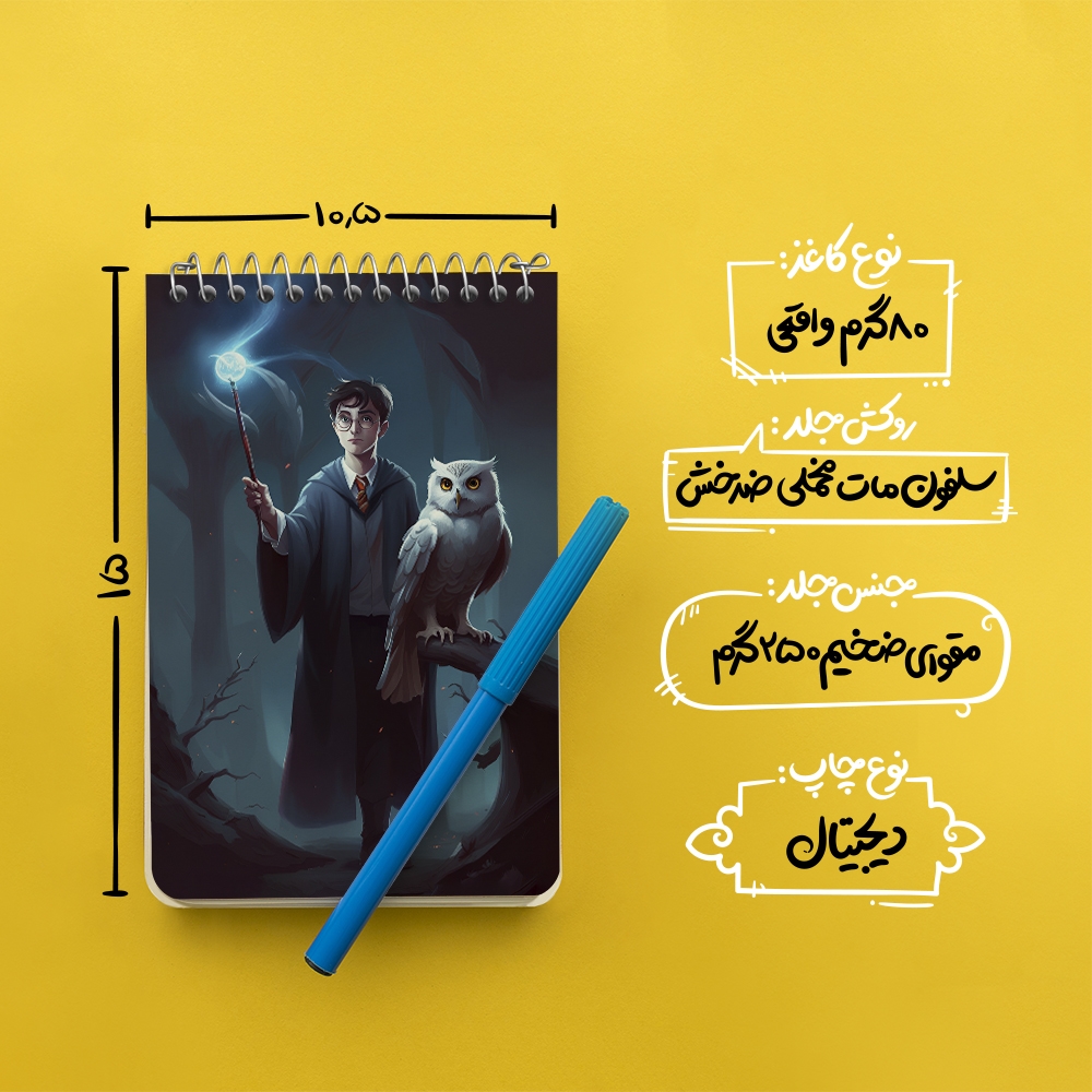 برند خندالو در زمینه تولید انواع دفاتر فانتزی و تحصیلی فعالیت میکند که به دلیل جذابیت ظاهری و طرح های متنوع طرفداران زیادی دارد. دفتر یادداشت خندالو طرح هری پاتر (Harry Potter) محصولی مناسب برای همه عاشقان لوازم التحریر است و همچنین همه کسانی که بنا به موقعیت تحصیل یا شغلشان با دفتر و نوشت افزار زیاد سر و کار دارند. در تولید دفتر یادداشت خندالو طرح هری پاتر (Harry Potter) از نوع صحافی فنر مارپیچ استفاده شده که در این نوع صحافی برگه‌ها به راحتی چرخیده و یا بیرون آورده می شوند.