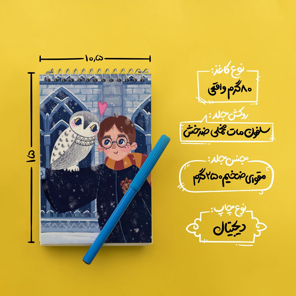 برند خندالو در زمینه تولید انواع دفاتر فانتزی و تحصیلی فعالیت میکند که به دلیل جذابیت ظاهری و طرح های متنوع طرفداران زیادی دارد. دفتر یادداشت خندالو طرح هری پاتر Harry Potter محصولی مناسب برای همه عاشقان لوازم التحریر است و همچنین همه کسانی که بنا به موقعیت تحصیل یا شغلشان با دفتر و نوشت افزار زیاد سر و کار دارند. در تولید دفتر یادداشت خندالو طرح هری پاتر Harry Potter از نوع صحافی فنر مارپیچ استفاده شده که در این نوع صحافی برگهها به راحتی چرخیده و یا بیرون آورده می شوند. دفتر های خندالو دارای جلد انعطاف پذیر از جنس مقوای گلاسه 250 گرم با روکش سلفون مات مخملی است که به شما امکان میدهد از دفتر خود بدون اینکه نگرانی از شکستن یا خراب شدن جلد را داشته باشید استفاده کنید و همچنین در این دفاتر از کاغذ 80 گرم با کیفیت استفاده شده که باعث میشود هنگام نوشتن به خوبی جوهر قلم بر روی صفحه نشسته و از خط خوردگیها جلوگیری کند. دفتر یادداشت خندالو با جنس و دوام مناسب، برگه های کاملاً سفید و خطوط طوسی دقیق را داراست که انسان را به نوشتن منظم و زیبا ترغیب میکند. طراحی کاملاً مناسب این دفاتر، به همراه کیفیت بالا، از آن یک محصول مورد علاقه و قابل اعتماد برای همه مقاطع تحصیلی میسازد. دفتر یادداشت خندالو طرح هری پاتر Harry Potter انتخابی هوشمندانه و مناسب برای افرادی است که به دنبال دفتری با کیفیت و کاربرد عالی هستند. این دفتر، همراه خوبی برای شما در تمام مراحل تحصیل و کار خواهد بود و تجربهای لذتبخش از نوشتن و آموختن را به شما هدیه میدهد.