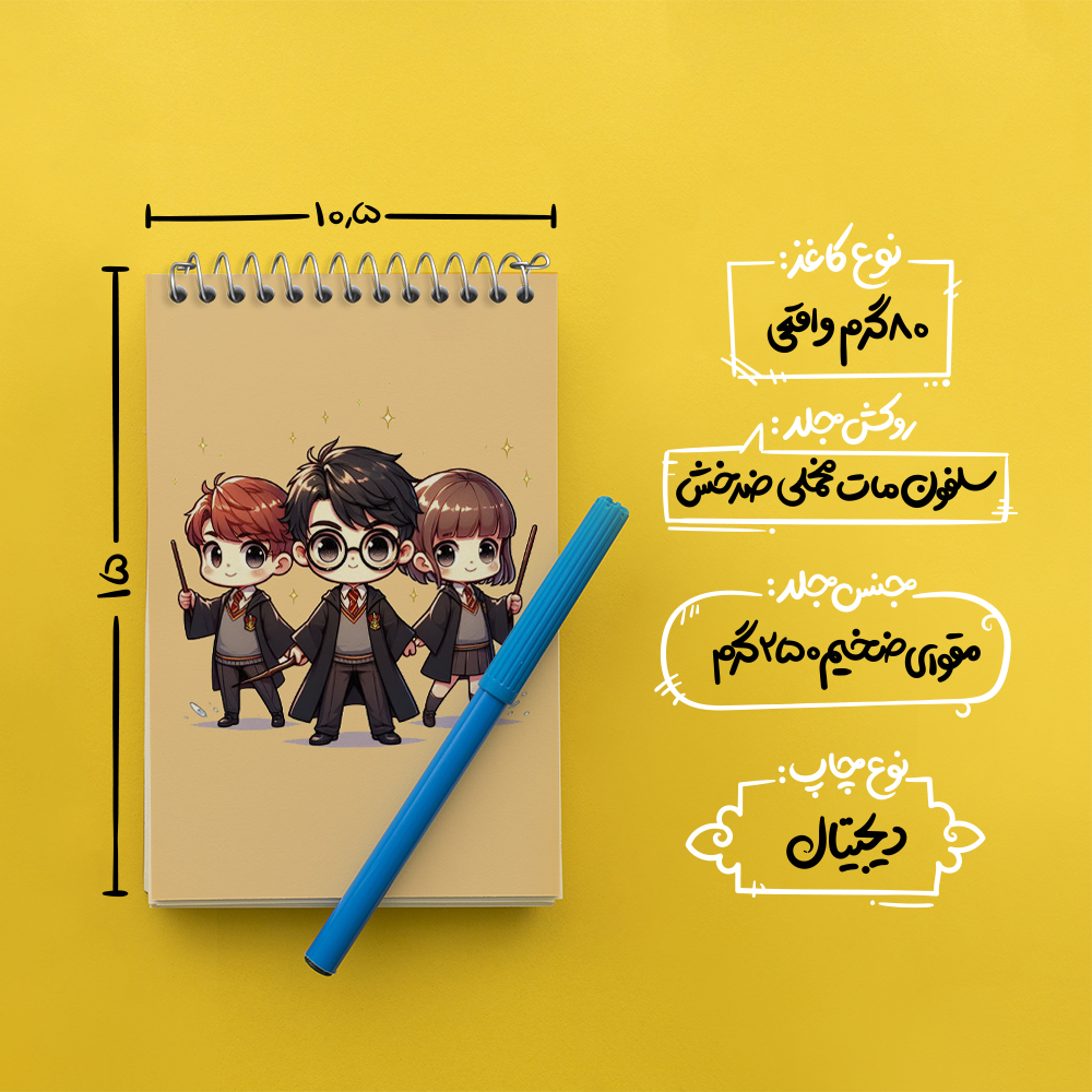 برند خندالو در زمینه تولید انواع دفاتر فانتزی و تحصیلی فعالیت میکند که به دلیل جذابیت ظاهری و طرح های متنوع طرفداران زیادی دارد. دفتر یادداشت خندالو طرح هری پاتر (Harry Potter) محصولی مناسب برای همه عاشقان لوازم التحریر است و همچنین همه کسانی که بنا به موقعیت تحصیل یا شغلشان با دفتر و نوشت افزار زیاد سر و کار دارند. در تولید دفتر یادداشت خندالو طرح هری پاتر (Harry Potter) از نوع صحافی فنر مارپیچ استفاده شده که در این نوع صحافی برگه‌ها به راحتی چرخیده و یا بیرون آورده می شوند.