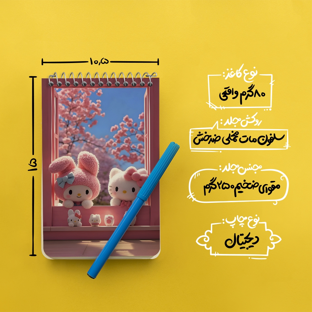 برند خندالو در زمینه تولید انواع دفاتر فانتزی و تحصیلی فعالیت میکند که به دلیل جذابیت ظاهری و طرح های متنوع طرفداران زیادی دارد. دفتر یادداشت خندالو طرح هلو کیتی و ملودی محصولی مناسب برای همه عاشقان لوازم التحریر است و همچنین همه کسانی که بنا به موقعیت تحصیل یا شغلشان با دفتر و نوشت افزار زیاد سر و کار دارند. در تولید دفتر یادداشت خندالو طرح هلو کیتی و ملودی از نوع صحافی فنر مارپیچ استفاده شده که در این نوع صحافی برگه‌ها به راحتی چرخیده و یا بیرون آورده می شوند.