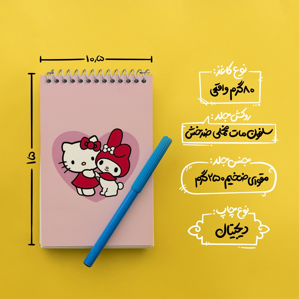 برند خندالو در زمینه تولید انواع دفاتر فانتزی و تحصیلی فعالیت میکند که به دلیل جذابیت ظاهری و طرح های متنوع طرفداران زیادی دارد. دفتر یادداشت خندالو طرح هلو کیتی و ملودی محصولی مناسب برای همه عاشقان لوازم التحریر است و همچنین همه کسانی که بنا به موقعیت تحصیل یا شغلشان با دفتر و نوشت افزار زیاد سر و کار دارند. در تولید دفتر یادداشت خندالو طرح هلو کیتی و ملودی از نوع صحافی فنر مارپیچ استفاده شده که در این نوع صحافی برگهها به راحتی چرخیده و یا بیرون آورده می شوند. دفتر های خندالو دارای جلد انعطاف پذیر از جنس مقوای گلاسه 250 گرم با روکش سلفون مات مخملی است که به شما امکان میدهد از دفتر خود بدون اینکه نگرانی از شکستن یا خراب شدن جلد را داشته باشید استفاده کنید و همچنین در این دفاتر از کاغذ 80 گرم با کیفیت استفاده شده که باعث میشود هنگام نوشتن به خوبی جوهر قلم بر روی صفحه نشسته و از خط خوردگیها جلوگیری کند. دفتر یادداشت خندالو با جنس و دوام مناسب، برگه های کاملاً سفید و خطوط طوسی دقیق را داراست که انسان را به نوشتن منظم و زیبا ترغیب میکند. طراحی کاملاً مناسب این دفاتر، به همراه کیفیت بالا، از آن یک محصول مورد علاقه و قابل اعتماد برای همه مقاطع تحصیلی میسازد. دفتر یادداشت خندالو طرح هلو کیتی و ملودی انتخابی هوشمندانه و مناسب برای افرادی است که به دنبال دفتری با کیفیت و کاربرد عالی هستند. این دفتر، همراه خوبی برای شما در تمام مراحل تحصیل و کار خواهد بود و تجربهای لذتبخش از نوشتن و آموختن را به شما هدیه میدهد.