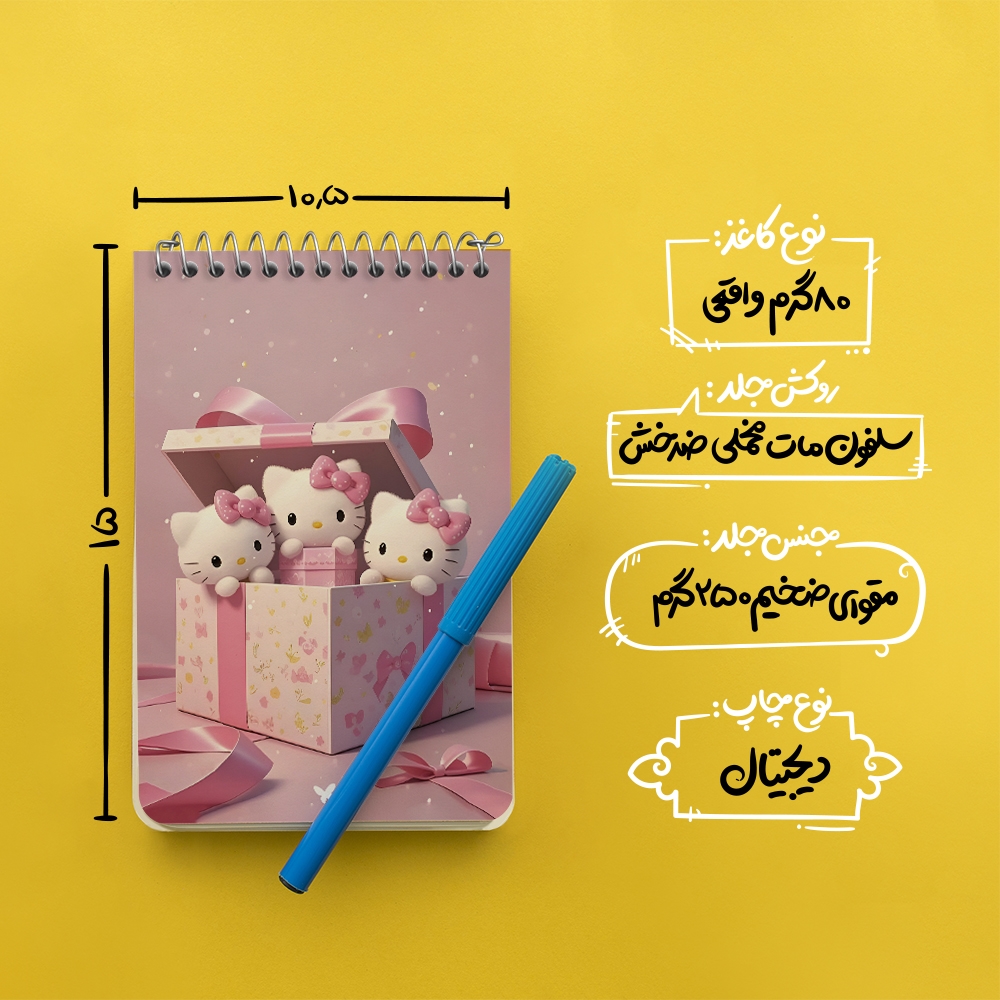 برند خندالو در زمینه تولید انواع دفاتر فانتزی و تحصیلی فعالیت میکند که به دلیل جذابیت ظاهری و طرح های متنوع طرفداران زیادی دارد. دفتر یادداشت خندالو طرح هلو کیتی محصولی مناسب برای همه عاشقان لوازم التحریر است و همچنین همه کسانی که بنا به موقعیت تحصیل یا شغلشان با دفتر و نوشت افزار زیاد سر و کار دارند. در تولید دفتر یادداشت خندالو طرح هلو کیتی از نوع صحافی فنر مارپیچ استفاده شده که در این نوع صحافی برگه‌ها به راحتی چرخیده و یا بیرون آورده می شوند.