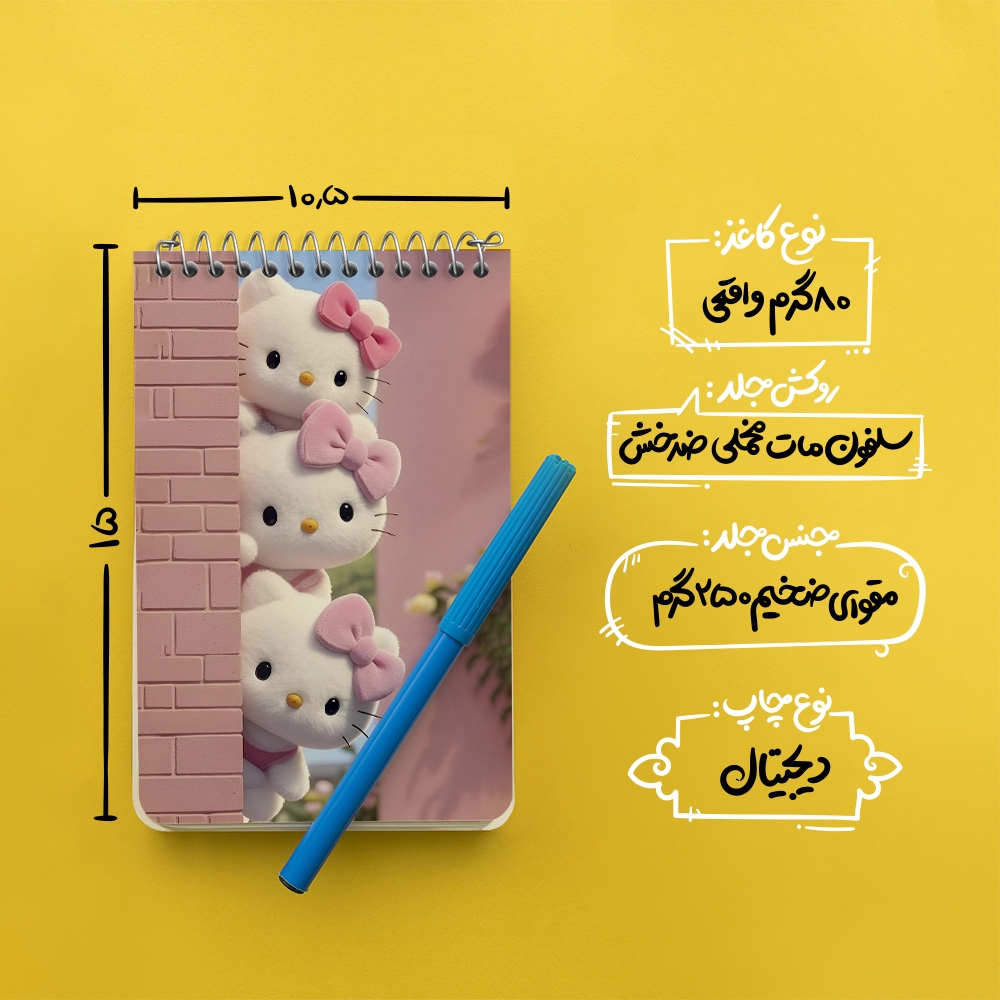 برند خندالو در زمینه تولید انواع دفاتر فانتزی و تحصیلی فعالیت میکند که به دلیل جذابیت ظاهری و طرح های متنوع طرفداران زیادی دارد. دفتر یادداشت خندالو طرح هلو کیتی محصولی مناسب برای همه عاشقان لوازم التحریر است و همچنین همه کسانی که بنا به موقعیت تحصیل یا شغلشان با دفتر و نوشت افزار زیاد سر و کار دارند. در تولید دفتر یادداشت خندالو طرح هلو کیتی از نوع صحافی فنر مارپیچ استفاده شده که در این نوع صحافی برگه‌ها به راحتی چرخیده و یا بیرون آورده می شوند.