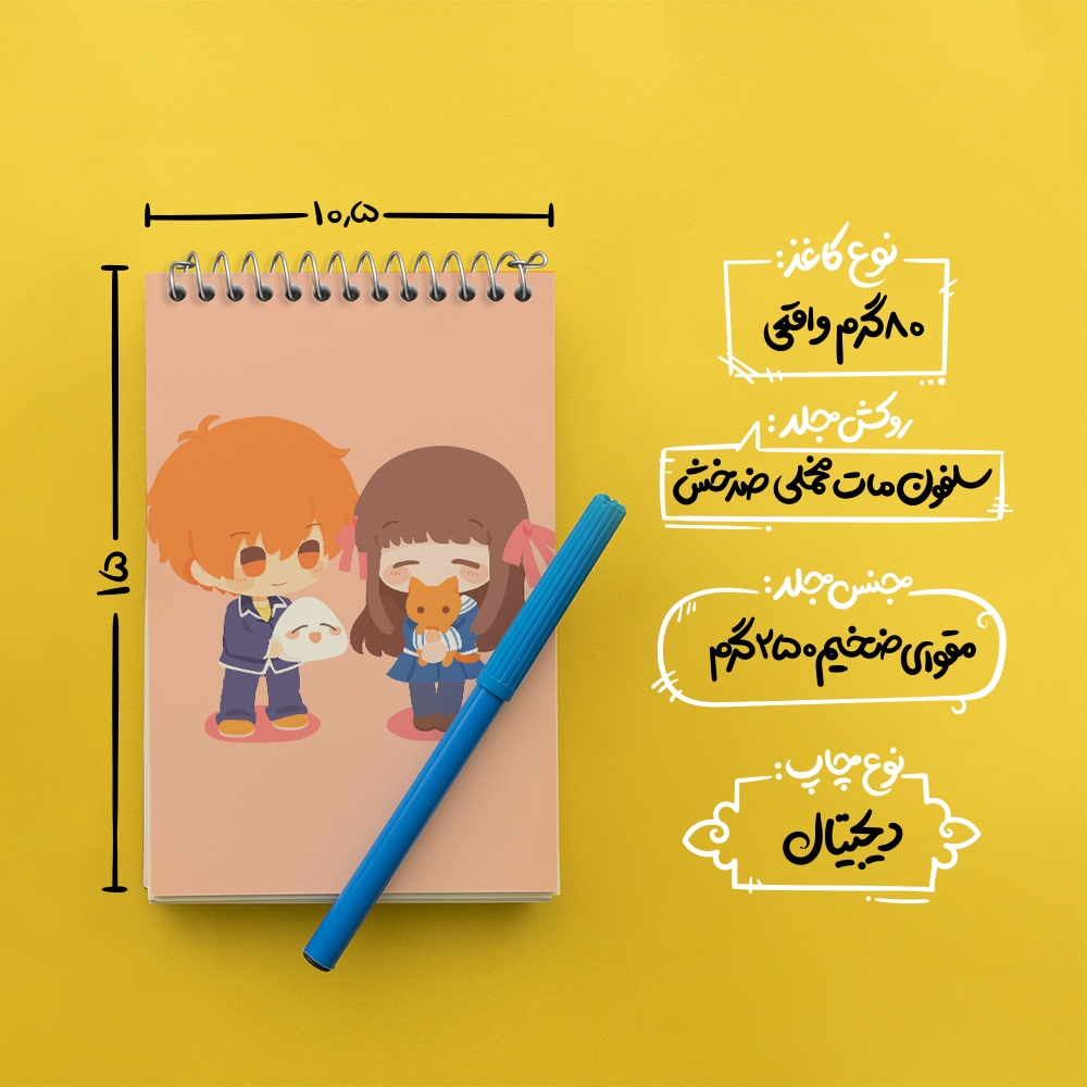 برند خندالو در زمینه تولید انواع دفاتر فانتزی و تحصیلی فعالیت میکند که به دلیل جذابیت ظاهری و طرح های متنوع طرفداران زیادی دارد. دفتر یادداشت خندالو طرح هوندا و کیو انیمه سبد میوه محصولی مناسب برای همه عاشقان لوازم التحریر است و همچنین همه کسانی که بنا به موقعیت تحصیل یا شغلشان با دفتر و نوشت افزار زیاد سر و کار دارند. در تولید دفتر یادداشت خندالو طرح هوندا و کیو انیمه سبد میوه از نوع صحافی فنر مارپیچ استفاده شده که در این نوع صحافی برگهها به راحتی چرخیده و یا بیرون آورده می شوند. دفتر های خندالو دارای جلد انعطاف پذیر از جنس مقوای گلاسه 250 گرم با روکش سلفون مات مخملی است که به شما امکان میدهد از دفتر خود بدون اینکه نگرانی از شکستن یا خراب شدن جلد را داشته باشید استفاده کنید و همچنین در این دفاتر از کاغذ 80 گرم با کیفیت استفاده شده که باعث میشود هنگام نوشتن به خوبی جوهر قلم بر روی صفحه نشسته و از خط خوردگیها جلوگیری کند. دفتر یادداشت خندالو با جنس و دوام مناسب، برگه های کاملاً سفید و خطوط طوسی دقیق را داراست که انسان را به نوشتن منظم و زیبا ترغیب میکند. طراحی کاملاً مناسب این دفاتر، به همراه کیفیت بالا، از آن یک محصول مورد علاقه و قابل اعتماد برای همه مقاطع تحصیلی میسازد. دفتر یادداشت خندالو طرح هوندا و کیو انیمه سبد میوه انتخابی هوشمندانه و مناسب برای افرادی است که به دنبال دفتری با کیفیت و کاربرد عالی هستند. این دفتر، همراه خوبی برای شما در تمام مراحل تحصیل و کار خواهد بود و تجربهای لذتبخش از نوشتن و آموختن را به شما هدیه میدهد.