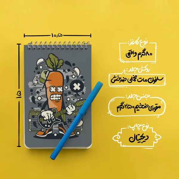 برند خندالو در زمینه تولید انواع دفاتر فانتزی و تحصیلی فعالیت میکند که به دلیل جذابیت ظاهری و طرح های متنوع طرفداران زیادی دارد. دفتر یادداشت خندالو طرح هویج بامزه محصولی مناسب برای همه عاشقان لوازم التحریر است و همچنین همه کسانی که بنا به موقعیت تحصیل یا شغلشان با دفتر و نوشت افزار زیاد سر و کار دارند. در تولید دفتر یادداشت خندالو طرح هویج بامزه از نوع صحافی فنر مارپیچ استفاده شده که در این نوع صحافی برگهها به راحتی چرخیده و یا بیرون آورده می شوند. دفتر های خندالو دارای جلد انعطاف پذیر از جنس مقوای گلاسه 250 گرم با روکش سلفون مات مخملی است که به شما امکان میدهد از دفتر خود بدون اینکه نگرانی از شکستن یا خراب شدن جلد را داشته باشید استفاده کنید و همچنین در این دفاتر از کاغذ 80 گرم با کیفیت استفاده شده که باعث میشود هنگام نوشتن به خوبی جوهر قلم بر روی صفحه نشسته و از خط خوردگیها جلوگیری کند. دفتر یادداشت خندالو با جنس و دوام مناسب، برگه های کاملاً سفید و خطوط طوسی دقیق را داراست که انسان را به نوشتن منظم و زیبا ترغیب میکند. طراحی کاملاً مناسب این دفاتر، به همراه کیفیت بالا، از آن یک محصول مورد علاقه و قابل اعتماد برای همه مقاطع تحصیلی میسازد. دفتر یادداشت خندالو طرح هویج بامزه انتخابی هوشمندانه و مناسب برای افرادی است که به دنبال دفتری با کیفیت و کاربرد عالی هستند. این دفتر، همراه خوبی برای شما در تمام مراحل تحصیل و کار خواهد بود و تجربهای لذتبخش از نوشتن و آموختن را به شما هدیه میدهد.