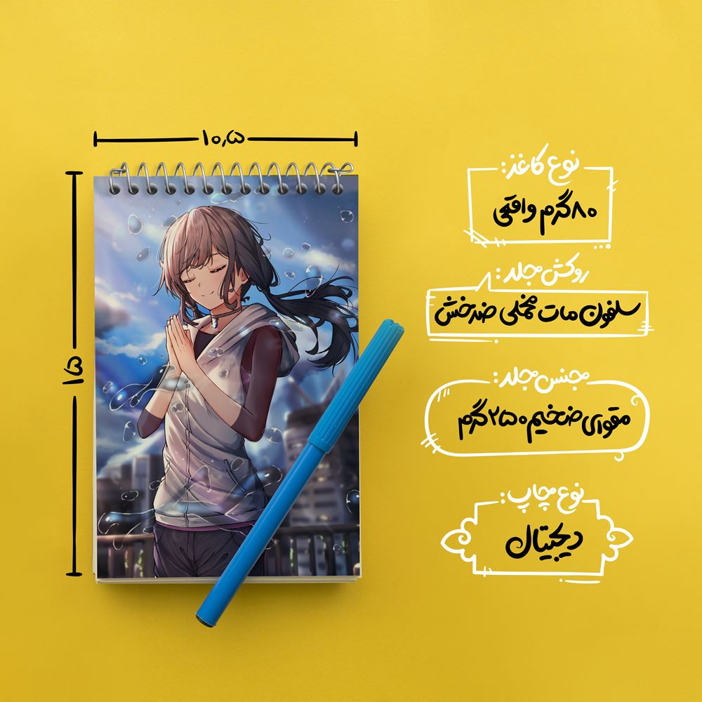 برند خندالو در زمینه تولید انواع دفاتر فانتزی و تحصیلی فعالیت میکند که به دلیل جذابیت ظاهری و طرح های متنوع طرفداران زیادی دارد. دفتر یادداشت خندالو طرح هینا انیمه تغییر آب و هوا با تو محصولی مناسب برای همه عاشقان لوازم التحریر است و همچنین همه کسانی که بنا به موقعیت تحصیل یا شغلشان با دفتر و نوشت افزار زیاد سر و کار دارند. در تولید دفتر یادداشت خندالو طرح هینا انیمه تغییر آب و هوا با تو از نوع صحافی فنر مارپیچ استفاده شده که در این نوع صحافی برگهها به راحتی چرخیده و یا بیرون آورده می شوند. دفتر های خندالو دارای جلد انعطاف پذیر از جنس مقوای گلاسه 250 گرم با روکش سلفون مات مخملی است که به شما امکان میدهد از دفتر خود بدون اینکه نگرانی از شکستن یا خراب شدن جلد را داشته باشید استفاده کنید و همچنین در این دفاتر از کاغذ 80 گرم با کیفیت استفاده شده که باعث میشود هنگام نوشتن به خوبی جوهر قلم بر روی صفحه نشسته و از خط خوردگیها جلوگیری کند. دفتر یادداشت خندالو با جنس و دوام مناسب، برگه های کاملاً سفید و خطوط طوسی دقیق را داراست که انسان را به نوشتن منظم و زیبا ترغیب میکند. طراحی کاملاً مناسب این دفاتر، به همراه کیفیت بالا، از آن یک محصول مورد علاقه و قابل اعتماد برای همه مقاطع تحصیلی میسازد. دفتر یادداشت خندالو طرح هینا انیمه تغییر آب و هوا با تو انتخابی هوشمندانه و مناسب برای افرادی است که به دنبال دفتری با کیفیت و کاربرد عالی هستند. این دفتر، همراه خوبی برای شما در تمام مراحل تحصیل و کار خواهد بود و تجربهای لذتبخش از نوشتن و آموختن را به شما هدیه میدهد.