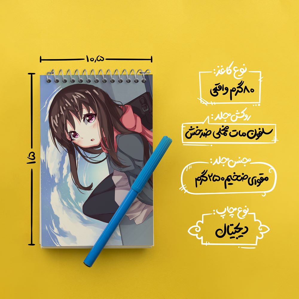 برند خندالو در زمینه تولید انواع دفاتر فانتزی و تحصیلی فعالیت میکند که به دلیل جذابیت ظاهری و طرح های متنوع طرفداران زیادی دارد. دفتر یادداشت خندالو طرح هیوری انیمه نوراگامی محصولی مناسب برای همه عاشقان لوازم التحریر است و همچنین همه کسانی که بنا به موقعیت تحصیل یا شغلشان با دفتر و نوشت افزار زیاد سر و کار دارند. در تولید دفتر یادداشت خندالو طرح هیوری انیمه نوراگامی از نوع صحافی فنر مارپیچ استفاده شده که در این نوع صحافی برگهها به راحتی چرخیده و یا بیرون آورده می شوند. دفتر های خندالو دارای جلد انعطاف پذیر از جنس مقوای گلاسه 250 گرم با روکش سلفون مات مخملی است که به شما امکان میدهد از دفتر خود بدون اینکه نگرانی از شکستن یا خراب شدن جلد را داشته باشید استفاده کنید و همچنین در این دفاتر از کاغذ 80 گرم با کیفیت استفاده شده که باعث میشود هنگام نوشتن به خوبی جوهر قلم بر روی صفحه نشسته و از خط خوردگیها جلوگیری کند. دفتر یادداشت خندالو با جنس و دوام مناسب، برگه های کاملاً سفید و خطوط طوسی دقیق را داراست که انسان را به نوشتن منظم و زیبا ترغیب میکند. طراحی کاملاً مناسب این دفاتر، به همراه کیفیت بالا، از آن یک محصول مورد علاقه و قابل اعتماد برای همه مقاطع تحصیلی میسازد. دفتر یادداشت خندالو طرح هیوری انیمه نوراگامی انتخابی هوشمندانه و مناسب برای افرادی است که به دنبال دفتری با کیفیت و کاربرد عالی هستند. این دفتر، همراه خوبی برای شما در تمام مراحل تحصیل و کار خواهد بود و تجربهای لذتبخش از نوشتن و آموختن را به شما هدیه میدهد.