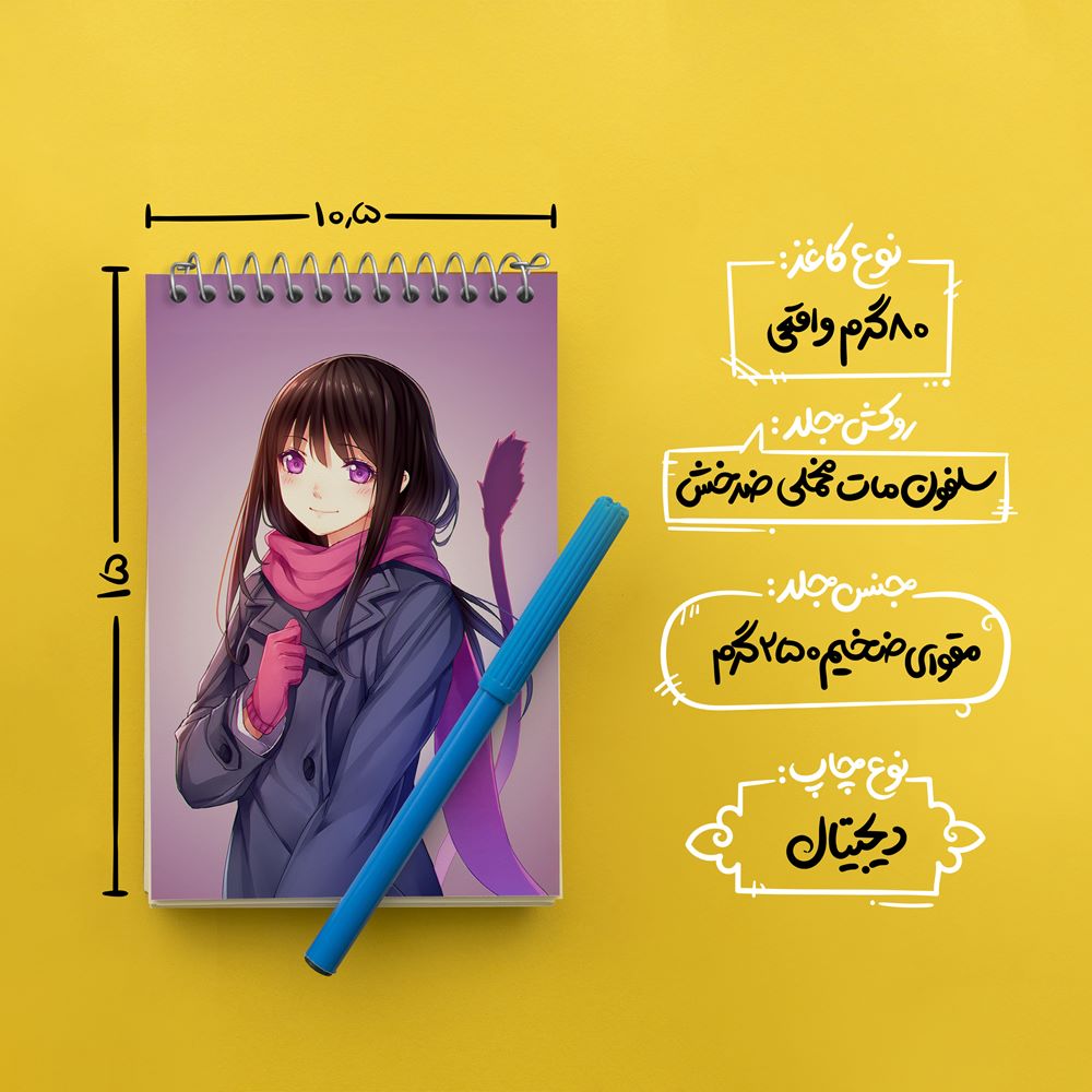 برند خندالو در زمینه تولید انواع دفاتر فانتزی و تحصیلی فعالیت میکند که به دلیل جذابیت ظاهری و طرح های متنوع طرفداران زیادی دارد. دفتر یادداشت خندالو طرح هیوری انیمه نوراگامی محصولی مناسب برای همه عاشقان لوازم التحریر است و همچنین همه کسانی که بنا به موقعیت تحصیل یا شغلشان با دفتر و نوشت افزار زیاد سر و کار دارند. در تولید دفتر یادداشت خندالو طرح هیوری انیمه نوراگامی از نوع صحافی فنر مارپیچ استفاده شده که در این نوع صحافی برگهها به راحتی چرخیده و یا بیرون آورده می شوند. دفتر های خندالو دارای جلد انعطاف پذیر از جنس مقوای گلاسه 250 گرم با روکش سلفون مات مخملی است که به شما امکان میدهد از دفتر خود بدون اینکه نگرانی از شکستن یا خراب شدن جلد را داشته باشید استفاده کنید و همچنین در این دفاتر از کاغذ 80 گرم با کیفیت استفاده شده که باعث میشود هنگام نوشتن به خوبی جوهر قلم بر روی صفحه نشسته و از خط خوردگیها جلوگیری کند. دفتر یادداشت خندالو با جنس و دوام مناسب، برگه های کاملاً سفید و خطوط طوسی دقیق را داراست که انسان را به نوشتن منظم و زیبا ترغیب میکند. طراحی کاملاً مناسب این دفاتر، به همراه کیفیت بالا، از آن یک محصول مورد علاقه و قابل اعتماد برای همه مقاطع تحصیلی میسازد. دفتر یادداشت خندالو طرح هیوری انیمه نوراگامی انتخابی هوشمندانه و مناسب برای افرادی است که به دنبال دفتری با کیفیت و کاربرد عالی هستند. این دفتر، همراه خوبی برای شما در تمام مراحل تحصیل و کار خواهد بود و تجربهای لذتبخش از نوشتن و آموختن را به شما هدیه میدهد.