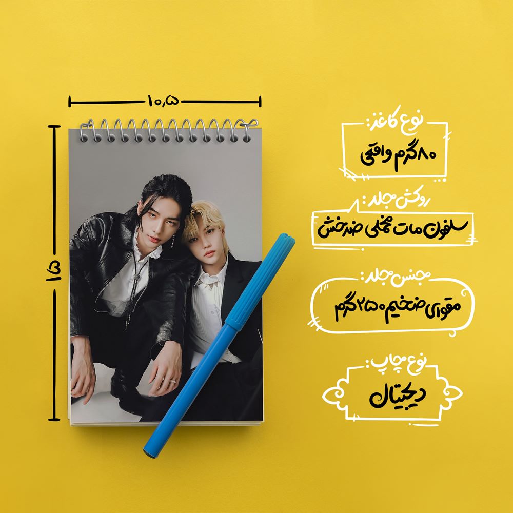 برند خندالو در زمینه تولید انواع دفاتر فانتزی و تحصیلی فعالیت میکند که به دلیل جذابیت ظاهری و طرح های متنوع طرفداران زیادی دارد. دفتر یادداشت خندالو طرح هیونجین و فلیکس گروه استری کیدز Stray Kids محصولی مناسب برای همه عاشقان لوازم التحریر است و همچنین همه کسانی که بنا به موقعیت تحصیل یا شغلشان با دفتر و نوشت افزار زیاد سر و کار دارند. در تولید دفتر یادداشت خندالو طرح هیونجین و فلیکس گروه استری کیدز Stray Kids از نوع صحافی فنر مارپیچ استفاده شده که در این نوع صحافی برگهها به راحتی چرخیده و یا بیرون آورده می شوند. دفتر های خندالو دارای جلد انعطاف پذیر از جنس مقوای گلاسه 250 گرم با روکش سلفون مات مخملی است که به شما امکان میدهد از دفتر خود بدون اینکه نگرانی از شکستن یا خراب شدن جلد را داشته باشید استفاده کنید و همچنین در این دفاتر از کاغذ 80 گرم با کیفیت استفاده شده که باعث میشود هنگام نوشتن به خوبی جوهر قلم بر روی صفحه نشسته و از خط خوردگیها جلوگیری کند. دفتر یادداشت خندالو با جنس و دوام مناسب، برگه های کاملاً سفید و خطوط طوسی دقیق را داراست که انسان را به نوشتن منظم و زیبا ترغیب میکند. طراحی کاملاً مناسب این دفاتر، به همراه کیفیت بالا، از آن یک محصول مورد علاقه و قابل اعتماد برای همه مقاطع تحصیلی میسازد. دفتر یادداشت خندالو طرح هیونجین و فلیکس گروه استری کیدز Stray Kids انتخابی هوشمندانه و مناسب برای افرادی است که به دنبال دفتری با کیفیت و کاربرد عالی هستند. این دفتر، همراه خوبی برای شما در تمام مراحل تحصیل و کار خواهد بود و تجربهای لذتبخش از نوشتن و آموختن را به شما هدیه میدهد.