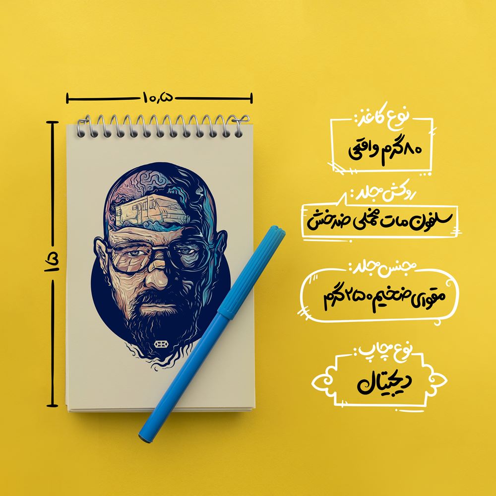 برند خندالو در زمینه تولید انواع دفاتر فانتزی و تحصیلی فعالیت میکند که به دلیل جذابیت ظاهری و طرح های متنوع طرفداران زیادی دارد. دفتر یادداشت خندالو طرح والتر وایت سریال بریکینگ بد Breaking Bad محصولی مناسب برای همه عاشقان لوازم التحریر است و همچنین همه کسانی که بنا به موقعیت تحصیل یا شغلشان با دفتر و نوشت افزار زیاد سر و کار دارند. در تولید دفتر یادداشت خندالو طرح والتر وایت سریال بریکینگ بد Breaking Bad از نوع صحافی فنر مارپیچ استفاده شده که در این نوع صحافی برگه‌ها به راحتی چرخیده و یا بیرون آورده می شوند.