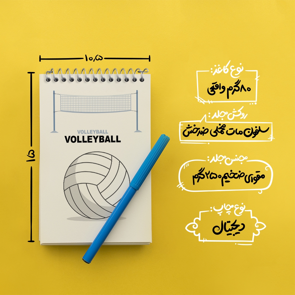 برند خندالو در زمینه تولید انواع دفاتر فانتزی و تحصیلی فعالیت میکند که به دلیل جذابیت ظاهری و طرح های متنوع طرفداران زیادی دارد. دفتر یادداشت خندالو طرح والیبال محصولی مناسب برای همه عاشقان لوازم التحریر است و همچنین همه کسانی که بنا به موقعیت تحصیل یا شغلشان با دفتر و نوشت افزار زیاد سر و کار دارند. در تولید دفتر یادداشت خندالو طرح والیبال از نوع صحافی فنر مارپیچ استفاده شده که در این نوع صحافی برگه‌ها به راحتی چرخیده و یا بیرون آورده می شوند.