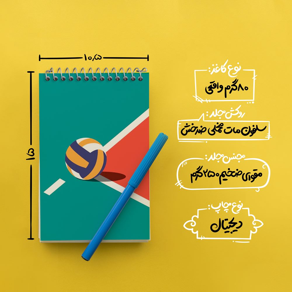 برند خندالو در زمینه تولید انواع دفاتر فانتزی و تحصیلی فعالیت میکند که به دلیل جذابیت ظاهری و طرح های متنوع طرفداران زیادی دارد. دفتر یادداشت خندالو طرح والیبال Volleyball محصولی مناسب برای همه عاشقان لوازم التحریر است و همچنین همه کسانی که بنا به موقعیت تحصیل یا شغلشان با دفتر و نوشت افزار زیاد سر و کار دارند. در تولید دفتر یادداشت خندالو طرح والیبال Volleyball از نوع صحافی فنر مارپیچ استفاده شده که در این نوع صحافی برگه‌ها به راحتی چرخیده و یا بیرون آورده می شوند.