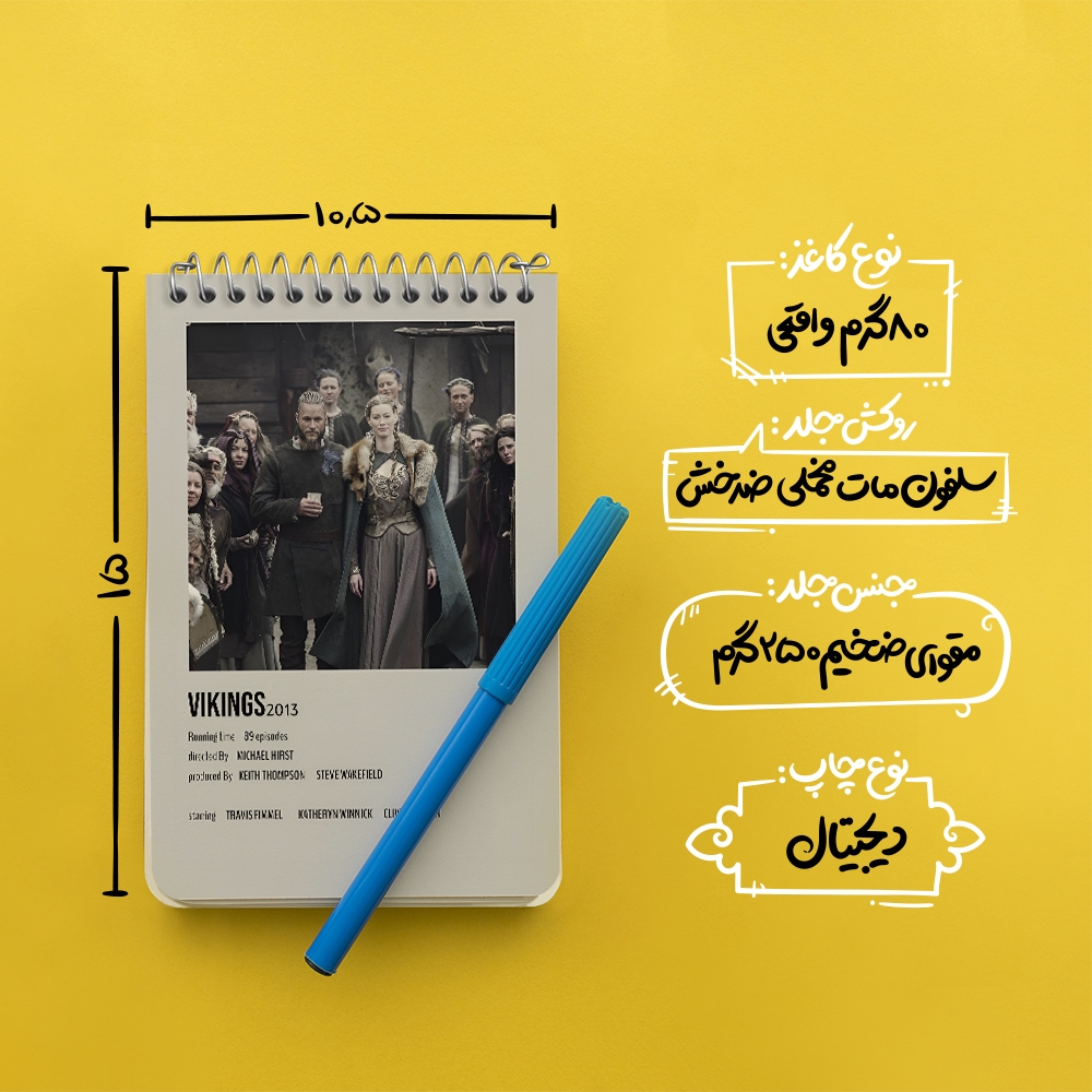برند خندالو در زمینه تولید انواع دفاتر فانتزی و تحصیلی فعالیت میکند که به دلیل جذابیت ظاهری و طرح های متنوع طرفداران زیادی دارد. دفتر یادداشت خندالو طرح وایکینگ ها (Vikings) محصولی مناسب برای همه عاشقان لوازم التحریر است و همچنین همه کسانی که بنا به موقعیت تحصیل یا شغلشان با دفتر و نوشت افزار زیاد سر و کار دارند. در تولید دفتر یادداشت خندالو طرح وایکینگ ها (Vikings) از نوع صحافی فنر مارپیچ استفاده شده که در این نوع صحافی برگه‌ها به راحتی چرخیده و یا بیرون آورده می شوند.