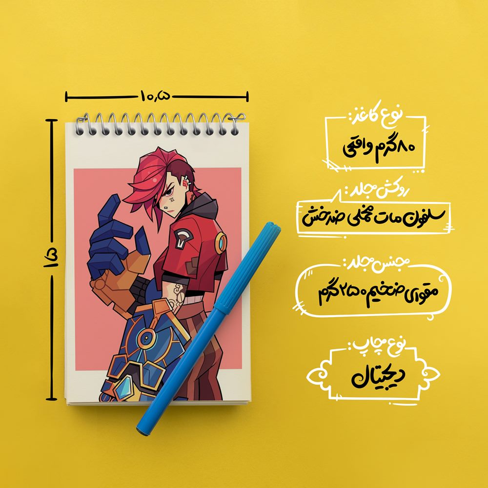 برند خندالو در زمینه تولید انواع دفاتر فانتزی و تحصیلی فعالیت میکند که به دلیل جذابیت ظاهری و طرح های متنوع طرفداران زیادی دارد. دفتر یادداشت خندالو طرح وای آرکین Arcane محصولی مناسب برای همه عاشقان لوازم التحریر است و همچنین همه کسانی که بنا به موقعیت تحصیل یا شغلشان با دفتر و نوشت افزار زیاد سر و کار دارند. در تولید دفتر یادداشت خندالو طرح وای آرکین Arcane از نوع صحافی فنر مارپیچ استفاده شده که در این نوع صحافی برگهها به راحتی چرخیده و یا بیرون آورده می شوند. دفتر های خندالو دارای جلد انعطاف پذیر از جنس مقوای گلاسه 250 گرم با روکش سلفون مات مخملی است که به شما امکان میدهد از دفتر خود بدون اینکه نگرانی از شکستن یا خراب شدن جلد را داشته باشید استفاده کنید و همچنین در این دفاتر از کاغذ 80 گرم با کیفیت استفاده شده که باعث میشود هنگام نوشتن به خوبی جوهر قلم بر روی صفحه نشسته و از خط خوردگیها جلوگیری کند. دفتر یادداشت خندالو با جنس و دوام مناسب، برگه های کاملاً سفید و خطوط طوسی دقیق را داراست که انسان را به نوشتن منظم و زیبا ترغیب میکند. طراحی کاملاً مناسب این دفاتر، به همراه کیفیت بالا، از آن یک محصول مورد علاقه و قابل اعتماد برای همه مقاطع تحصیلی میسازد. دفتر یادداشت خندالو طرح وای آرکین Arcane انتخابی هوشمندانه و مناسب برای افرادی است که به دنبال دفتری با کیفیت و کاربرد عالی هستند. این دفتر، همراه خوبی برای شما در تمام مراحل تحصیل و کار خواهد بود و تجربهای لذتبخش از نوشتن و آموختن را به شما هدیه میدهد.