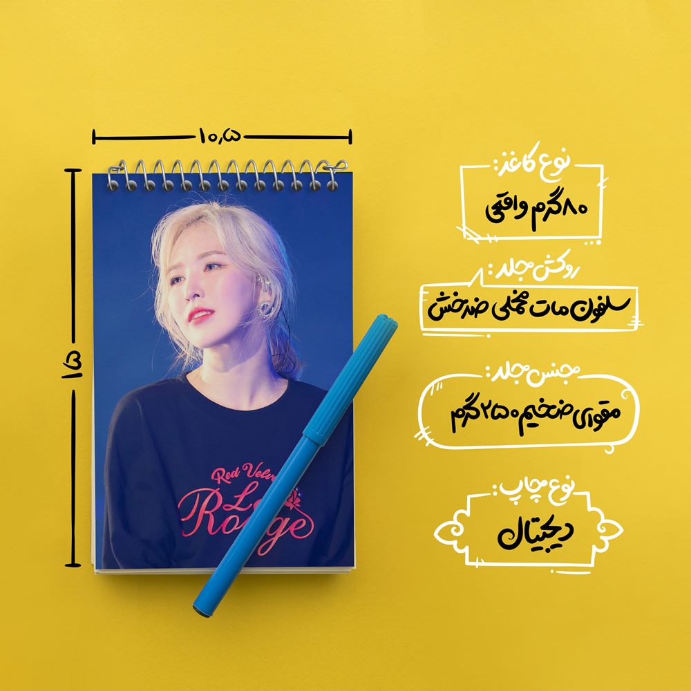 برند خندالو در زمینه تولید انواع دفاتر فانتزی و تحصیلی فعالیت میکند که به دلیل جذابیت ظاهری و طرح های متنوع طرفداران زیادی دارد. دفتر یادداشت خندالو طرح وندی گروه رد ولوت Red Velvet محصولی مناسب برای همه عاشقان لوازم التحریر است و همچنین همه کسانی که بنا به موقعیت تحصیل یا شغلشان با دفتر و نوشت افزار زیاد سر و کار دارند. در تولید دفتر یادداشت خندالو طرح وندی گروه رد ولوت Red Velvet از نوع صحافی فنر مارپیچ استفاده شده که در این نوع صحافی برگهها به راحتی چرخیده و یا بیرون آورده می شوند. دفتر های خندالو دارای جلد انعطاف پذیر از جنس مقوای گلاسه 250 گرم با روکش سلفون مات مخملی است که به شما امکان میدهد از دفتر خود بدون اینکه نگرانی از شکستن یا خراب شدن جلد را داشته باشید استفاده کنید و همچنین در این دفاتر از کاغذ 80 گرم با کیفیت استفاده شده که باعث میشود هنگام نوشتن به خوبی جوهر قلم بر روی صفحه نشسته و از خط خوردگیها جلوگیری کند. دفتر یادداشت خندالو با جنس و دوام مناسب، برگه های کاملاً سفید و خطوط طوسی دقیق را داراست که انسان را به نوشتن منظم و زیبا ترغیب میکند. طراحی کاملاً مناسب این دفاتر، به همراه کیفیت بالا، از آن یک محصول مورد علاقه و قابل اعتماد برای همه مقاطع تحصیلی میسازد. دفتر یادداشت خندالو طرح وندی گروه رد ولوت Red Velvet انتخابی هوشمندانه و مناسب برای افرادی است که به دنبال دفتری با کیفیت و کاربرد عالی هستند. این دفتر، همراه خوبی برای شما در تمام مراحل تحصیل و کار خواهد بود و تجربهای لذتبخش از نوشتن و آموختن را به شما هدیه میدهد.