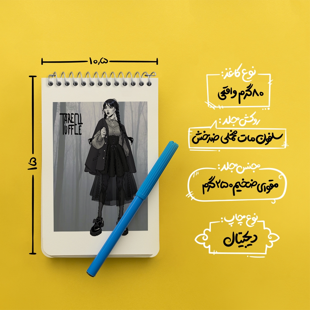 برند خندالو در زمینه تولید انواع دفاتر فانتزی و تحصیلی فعالیت میکند که به دلیل جذابیت ظاهری و طرح های متنوع طرفداران زیادی دارد. دفتر یادداشت خندالو طرح ونزدی (Wednesday) محصولی مناسب برای همه عاشقان لوازم التحریر است و همچنین همه کسانی که بنا به موقعیت تحصیل یا شغلشان با دفتر و نوشت افزار زیاد سر و کار دارند. در تولید دفتر یادداشت خندالو طرح ونزدی (Wednesday) از نوع صحافی فنر مارپیچ استفاده شده که در این نوع صحافی برگه‌ها به راحتی چرخیده و یا بیرون آورده می شوند.