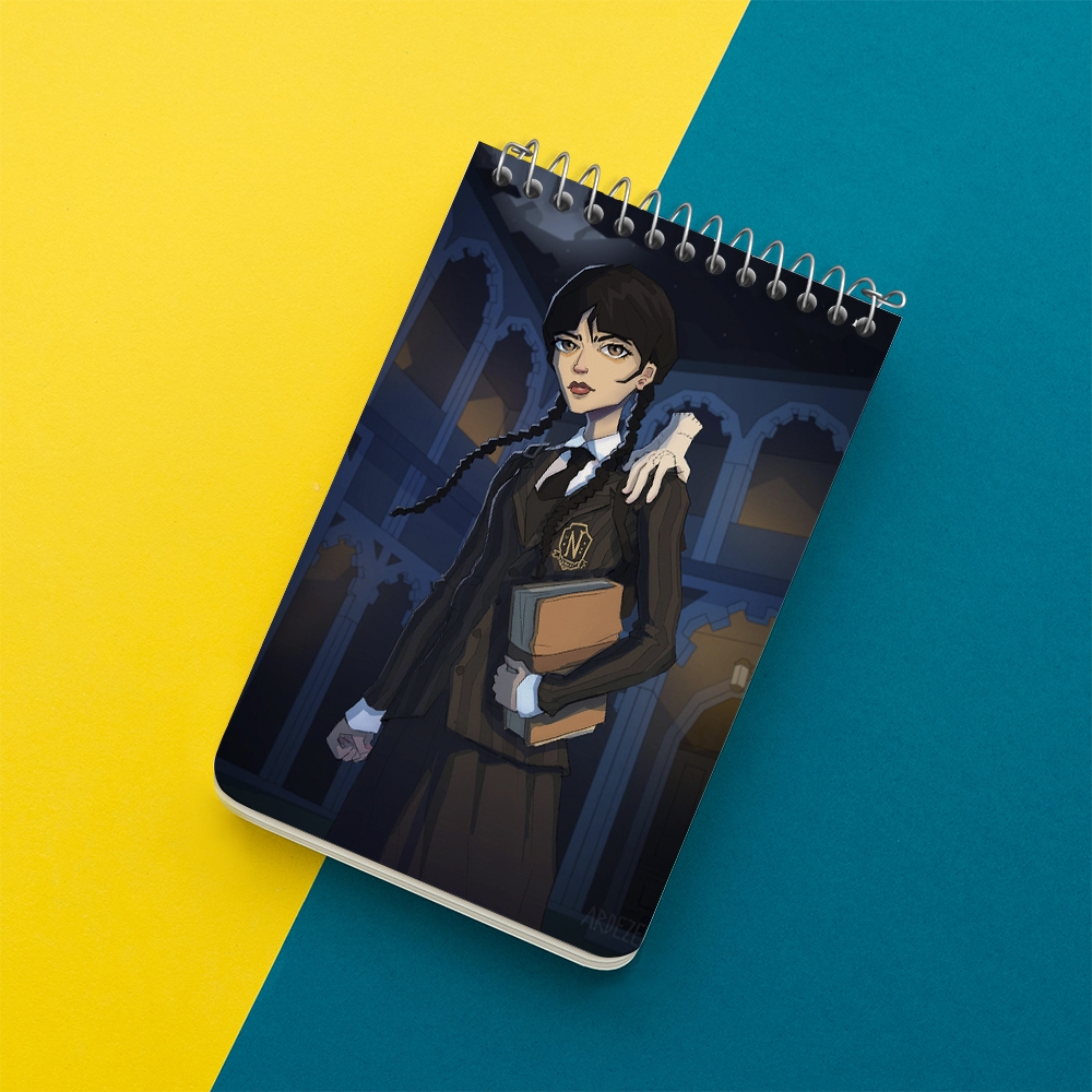 برند خندالو در زمینه تولید انواع دفاتر فانتزی و تحصیلی فعالیت میکند که به دلیل جذابیت ظاهری و طرح های متنوع طرفداران زیادی دارد. دفتر یادداشت خندالو طرح ونزدی (Wednesday) محصولی مناسب برای همه عاشقان لوازم التحریر است و همچنین همه کسانی که بنا به موقعیت تحصیل یا شغلشان با دفتر و نوشت افزار زیاد سر و کار دارند. در تولید دفتر یادداشت خندالو طرح ونزدی (Wednesday) از نوع صحافی فنر مارپیچ استفاده شده که در این نوع صحافی برگه‌ها به راحتی چرخیده و یا بیرون آورده می شوند.