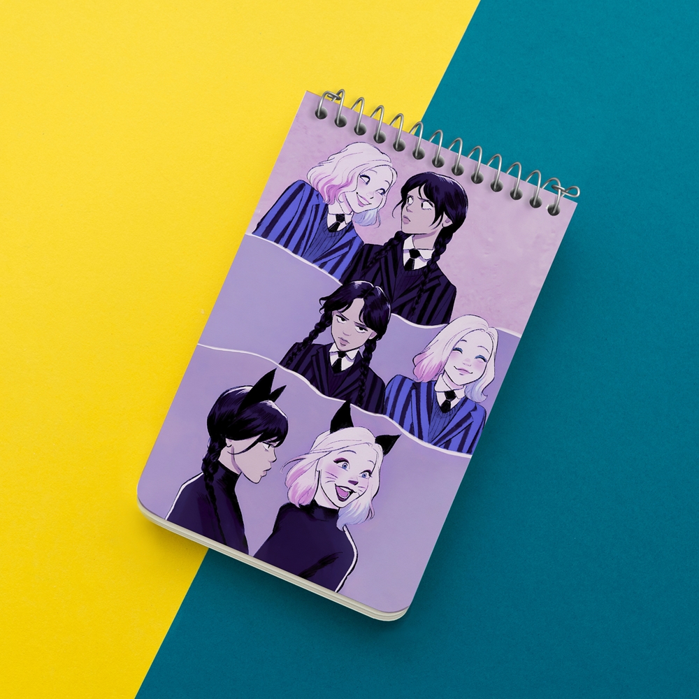 برند خندالو در زمینه تولید انواع دفاتر فانتزی و تحصیلی فعالیت میکند که به دلیل جذابیت ظاهری و طرح های متنوع طرفداران زیادی دارد. دفتر یادداشت خندالو طرح ونزدی (Wednesday) محصولی مناسب برای همه عاشقان لوازم التحریر است و همچنین همه کسانی که بنا به موقعیت تحصیل یا شغلشان با دفتر و نوشت افزار زیاد سر و کار دارند. در تولید دفتر یادداشت خندالو طرح ونزدی (Wednesday) از نوع صحافی فنر مارپیچ استفاده شده که در این نوع صحافی برگه‌ها به راحتی چرخیده و یا بیرون آورده می شوند.