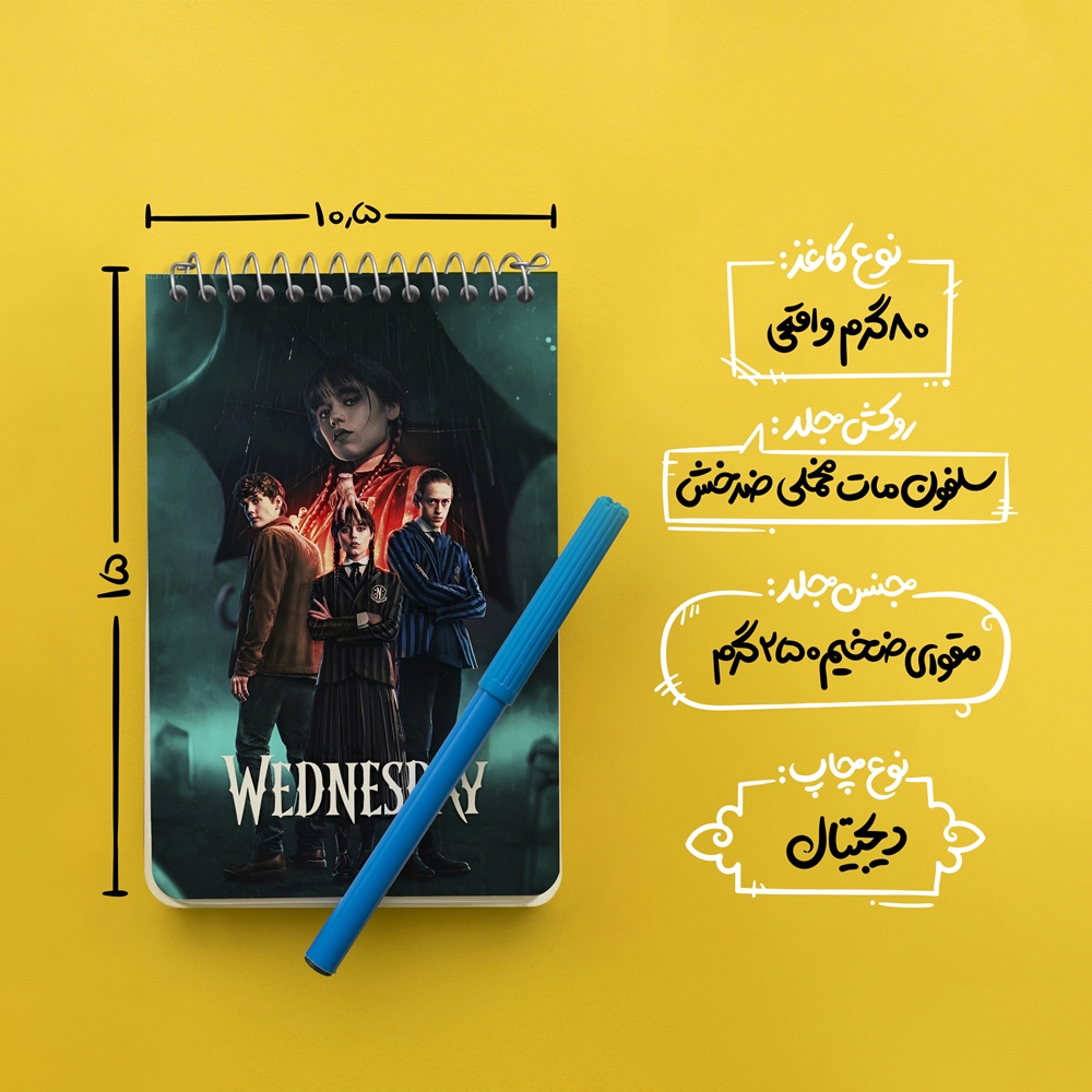 برند خندالو در زمینه تولید انواع دفاتر فانتزی و تحصیلی فعالیت میکند که به دلیل جذابیت ظاهری و طرح های متنوع طرفداران زیادی دارد. دفتر یادداشت خندالو طرح ونزدی (Wednesday) محصولی مناسب برای همه عاشقان لوازم التحریر است و همچنین همه کسانی که بنا به موقعیت تحصیل یا شغلشان با دفتر و نوشت افزار زیاد سر و کار دارند. در تولید دفتر یادداشت خندالو طرح ونزدی (Wednesday) از نوع صحافی فنر مارپیچ استفاده شده که در این نوع صحافی برگه‌ها به راحتی چرخیده و یا بیرون آورده می شوند.