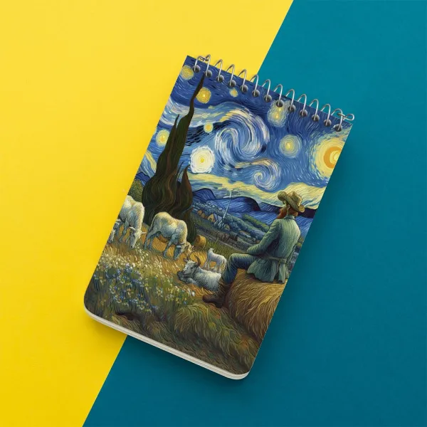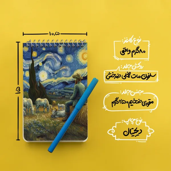 برند خندالو در زمینه تولید انواع دفاتر فانتزی و تحصیلی فعالیت میکند که به دلیل جذابیت ظاهری و طرح های متنوع طرفداران زیادی دارد. دفتر یادداشت خندالو طرح ونسان ونگوگ محصولی مناسب برای همه عاشقان لوازم التحریر است و همچنین همه کسانی که بنا به موقعیت تحصیل یا شغلشان با دفتر و نوشت افزار زیاد سر و کار دارند. در تولید دفتر یادداشت خندالو طرح ونسان ونگوگ از نوع صحافی فنر مارپیچ استفاده شده که در این نوع صحافی برگه‌ها به راحتی چرخیده و یا بیرون آورده می شوند.