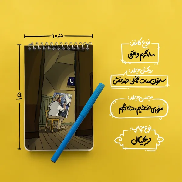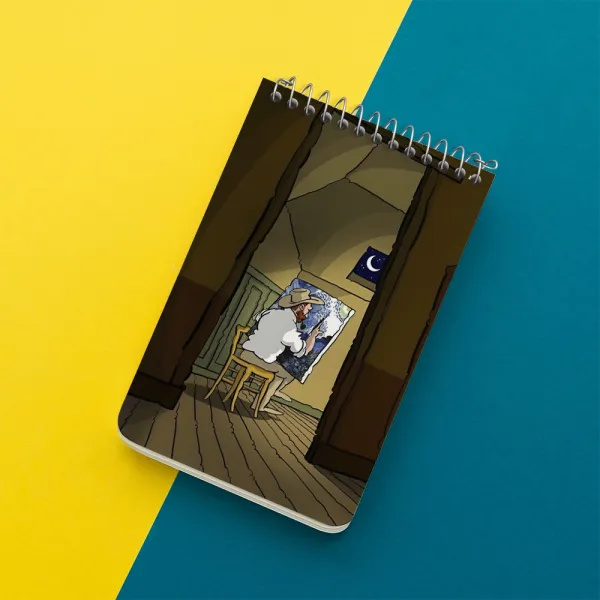 برند خندالو در زمینه تولید انواع دفاتر فانتزی و تحصیلی فعالیت میکند که به دلیل جذابیت ظاهری و طرح های متنوع طرفداران زیادی دارد. دفتر یادداشت خندالو طرح ونسان ونگوگ محصولی مناسب برای همه عاشقان لوازم التحریر است و همچنین همه کسانی که بنا به موقعیت تحصیل یا شغلشان با دفتر و نوشت افزار زیاد سر و کار دارند. در تولید دفتر یادداشت خندالو طرح ونسان ونگوگ از نوع صحافی فنر مارپیچ استفاده شده که در این نوع صحافی برگه‌ها به راحتی چرخیده و یا بیرون آورده می شوند.