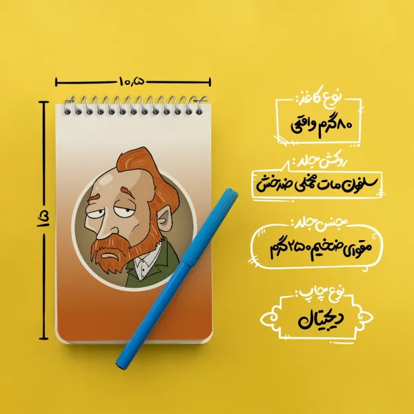 برند خندالو در زمینه تولید انواع دفاتر فانتزی و تحصیلی فعالیت میکند که به دلیل جذابیت ظاهری و طرح های متنوع طرفداران زیادی دارد. دفتر یادداشت خندالو طرح ونسان ونگوگ محصولی مناسب برای همه عاشقان لوازم التحریر است و همچنین همه کسانی که بنا به موقعیت تحصیل یا شغلشان با دفتر و نوشت افزار زیاد سر و کار دارند. در تولید دفتر یادداشت خندالو طرح ونسان ونگوگ از نوع صحافی فنر مارپیچ استفاده شده که در این نوع صحافی برگه‌ها به راحتی چرخیده و یا بیرون آورده می شوند.