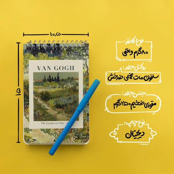 برند خندالو در زمینه تولید انواع دفاتر فانتزی و تحصیلی فعالیت میکند که به دلیل جذابیت ظاهری و طرح های متنوع طرفداران زیادی دارد. دفتر یادداشت خندالو طرح ونسان ونگوگ محصولی مناسب برای همه عاشقان لوازم التحریر است و همچنین همه کسانی که بنا به موقعیت تحصیل یا شغلشان با دفتر و نوشت افزار زیاد سر و کار دارند. در تولید دفتر یادداشت خندالو طرح ونسان ونگوگ از نوع صحافی فنر مارپیچ استفاده شده که در این نوع صحافی برگه‌ها به راحتی چرخیده و یا بیرون آورده می شوند.