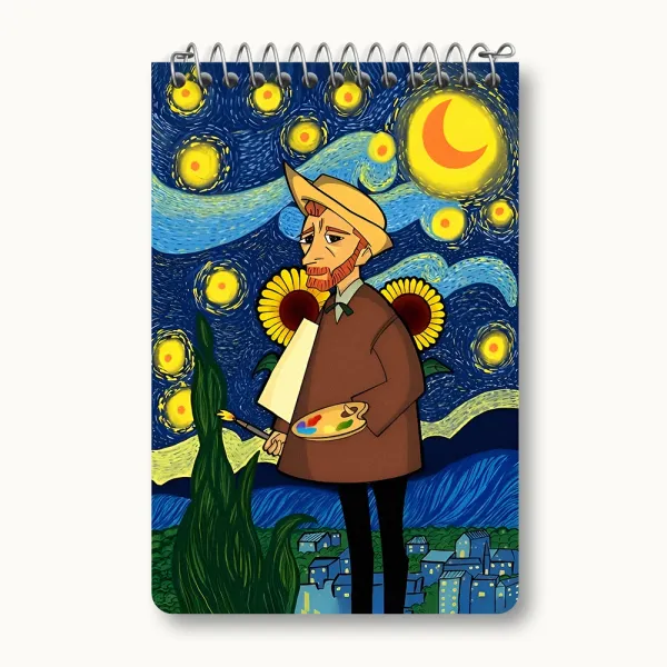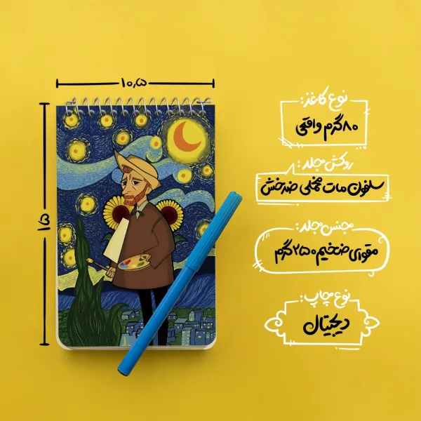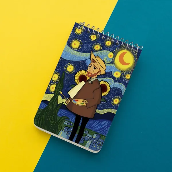 برند خندالو در زمینه تولید انواع دفاتر فانتزی و تحصیلی فعالیت میکند که به دلیل جذابیت ظاهری و طرح های متنوع طرفداران زیادی دارد. دفتر یادداشت خندالو طرح ونسان ونگوگ محصولی مناسب برای همه عاشقان لوازم التحریر است و همچنین همه کسانی که بنا به موقعیت تحصیل یا شغلشان با دفتر و نوشت افزار زیاد سر و کار دارند. در تولید دفتر یادداشت خندالو طرح ونسان ونگوگ از نوع صحافی فنر مارپیچ استفاده شده که در این نوع صحافی برگه‌ها به راحتی چرخیده و یا بیرون آورده می شوند.