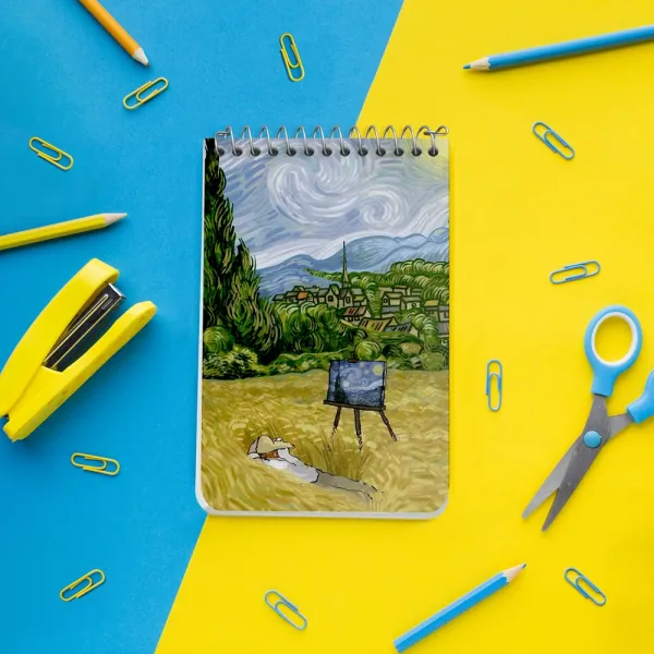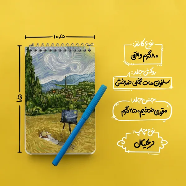 برند خندالو در زمینه تولید انواع دفاتر فانتزی و تحصیلی فعالیت میکند که به دلیل جذابیت ظاهری و طرح های متنوع طرفداران زیادی دارد. دفتر یادداشت خندالو طرح ونسان ونگوگ محصولی مناسب برای همه عاشقان لوازم التحریر است و همچنین همه کسانی که بنا به موقعیت تحصیل یا شغلشان با دفتر و نوشت افزار زیاد سر و کار دارند. در تولید دفتر یادداشت خندالو طرح ونسان ونگوگ از نوع صحافی فنر مارپیچ استفاده شده که در این نوع صحافی برگه‌ها به راحتی چرخیده و یا بیرون آورده می شوند.