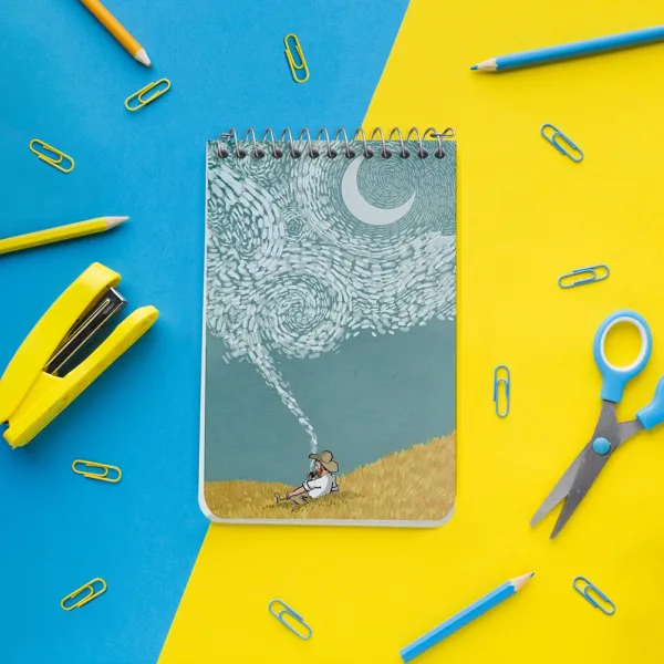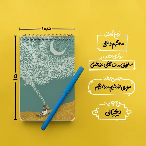 برند خندالو در زمینه تولید انواع دفاتر فانتزی و تحصیلی فعالیت میکند که به دلیل جذابیت ظاهری و طرح های متنوع طرفداران زیادی دارد. دفتر یادداشت خندالو طرح ونسان ونگوگ محصولی مناسب برای همه عاشقان لوازم التحریر است و همچنین همه کسانی که بنا به موقعیت تحصیل یا شغلشان با دفتر و نوشت افزار زیاد سر و کار دارند. در تولید دفتر یادداشت خندالو طرح ونسان ونگوگ از نوع صحافی فنر مارپیچ استفاده شده که در این نوع صحافی برگه‌ها به راحتی چرخیده و یا بیرون آورده می شوند.