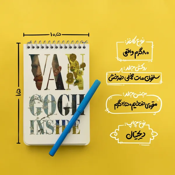 برند خندالو در زمینه تولید انواع دفاتر فانتزی و تحصیلی فعالیت میکند که به دلیل جذابیت ظاهری و طرح های متنوع طرفداران زیادی دارد. دفتر یادداشت خندالو طرح ونسان ونگوگ محصولی مناسب برای همه عاشقان لوازم التحریر است و همچنین همه کسانی که بنا به موقعیت تحصیل یا شغلشان با دفتر و نوشت افزار زیاد سر و کار دارند. در تولید دفتر یادداشت خندالو طرح ونسان ونگوگ از نوع صحافی فنر مارپیچ استفاده شده که در این نوع صحافی برگه‌ها به راحتی چرخیده و یا بیرون آورده می شوند.