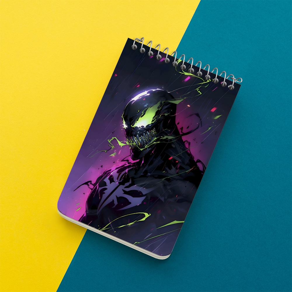 برند خندالو در زمینه تولید انواع دفاتر فانتزی و تحصیلی فعالیت میکند که به دلیل جذابیت ظاهری و طرح های متنوع طرفداران زیادی دارد. دفتر یادداشت خندالو طرح ونوم (Venom) محصولی مناسب برای همه عاشقان لوازم التحریر است و همچنین همه کسانی که بنا به موقعیت تحصیل یا شغلشان با دفتر و نوشت افزار زیاد سر و کار دارند. در تولید دفتر یادداشت خندالو طرح ونوم (Venom) از نوع صحافی فنر مارپیچ استفاده شده که در این نوع صحافی برگه‌ها به راحتی چرخیده و یا بیرون آورده می شوند.