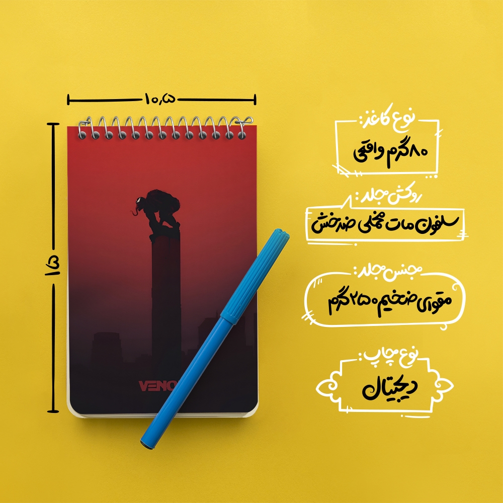 برند خندالو در زمینه تولید انواع دفاتر فانتزی و تحصیلی فعالیت میکند که به دلیل جذابیت ظاهری و طرح های متنوع طرفداران زیادی دارد. دفتر یادداشت خندالو طرح ونوم (Venom) محصولی مناسب برای همه عاشقان لوازم التحریر است و همچنین همه کسانی که بنا به موقعیت تحصیل یا شغلشان با دفتر و نوشت افزار زیاد سر و کار دارند. در تولید دفتر یادداشت خندالو طرح ونوم (Venom) از نوع صحافی فنر مارپیچ استفاده شده که در این نوع صحافی برگه‌ها به راحتی چرخیده و یا بیرون آورده می شوند.